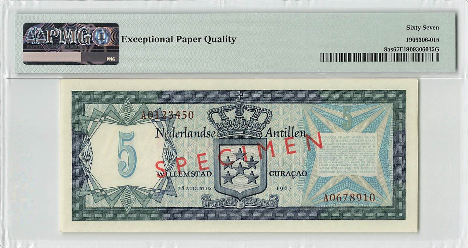 Netherlands Antilles 5 Gulden 1967 Specimen Pick 8as PMG Superb Gem Uncirculated 67 EPQ