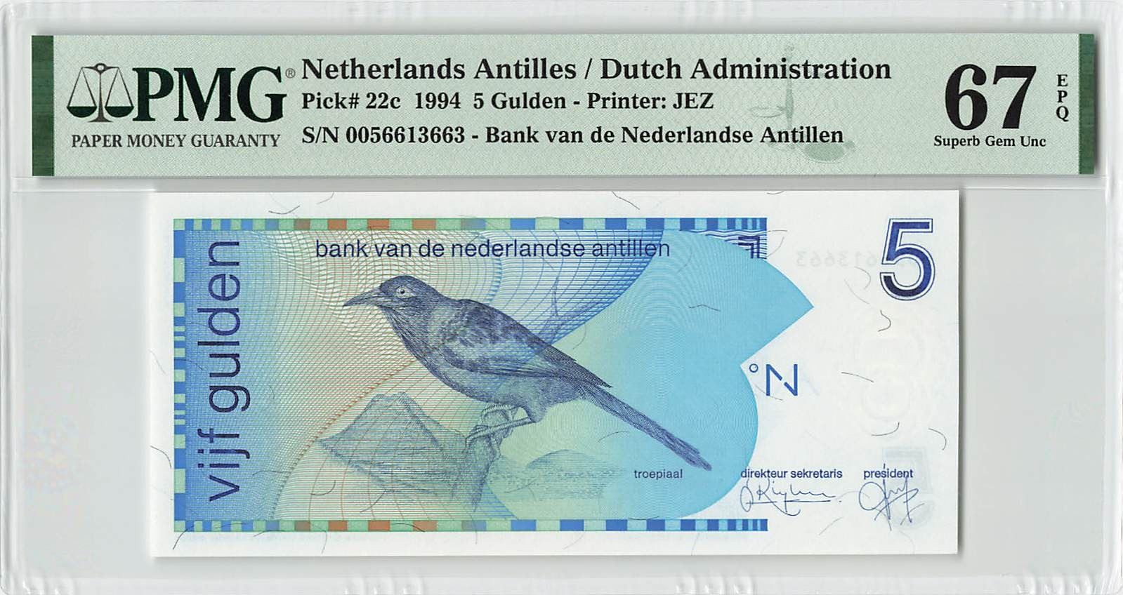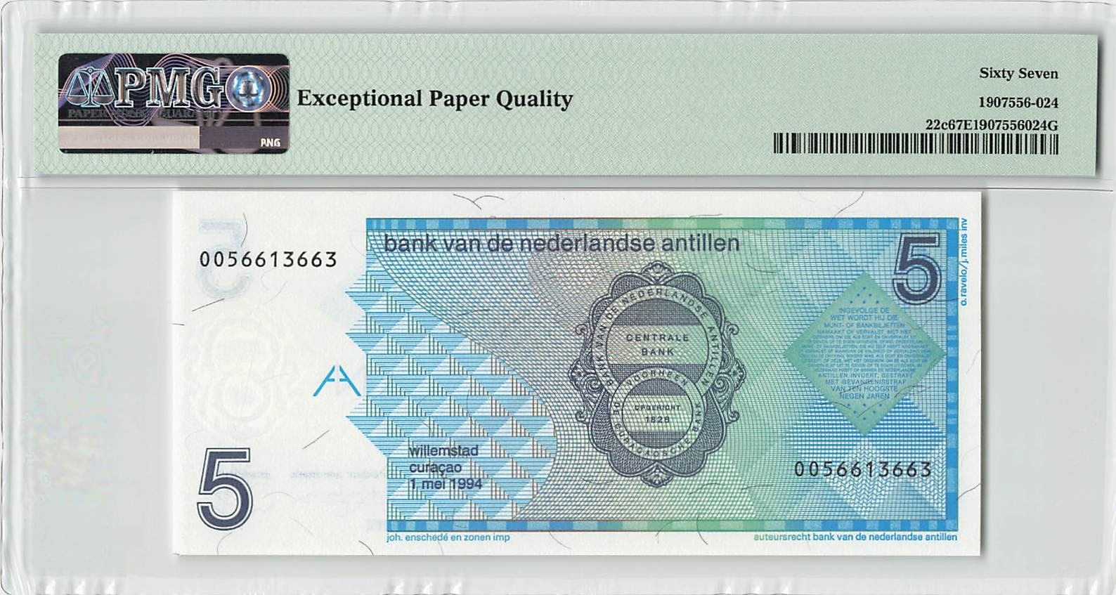 Netherlands Antilles 5 Gulden 1994 Pick 22c PMG Superb Gem UNC 67 EPQ