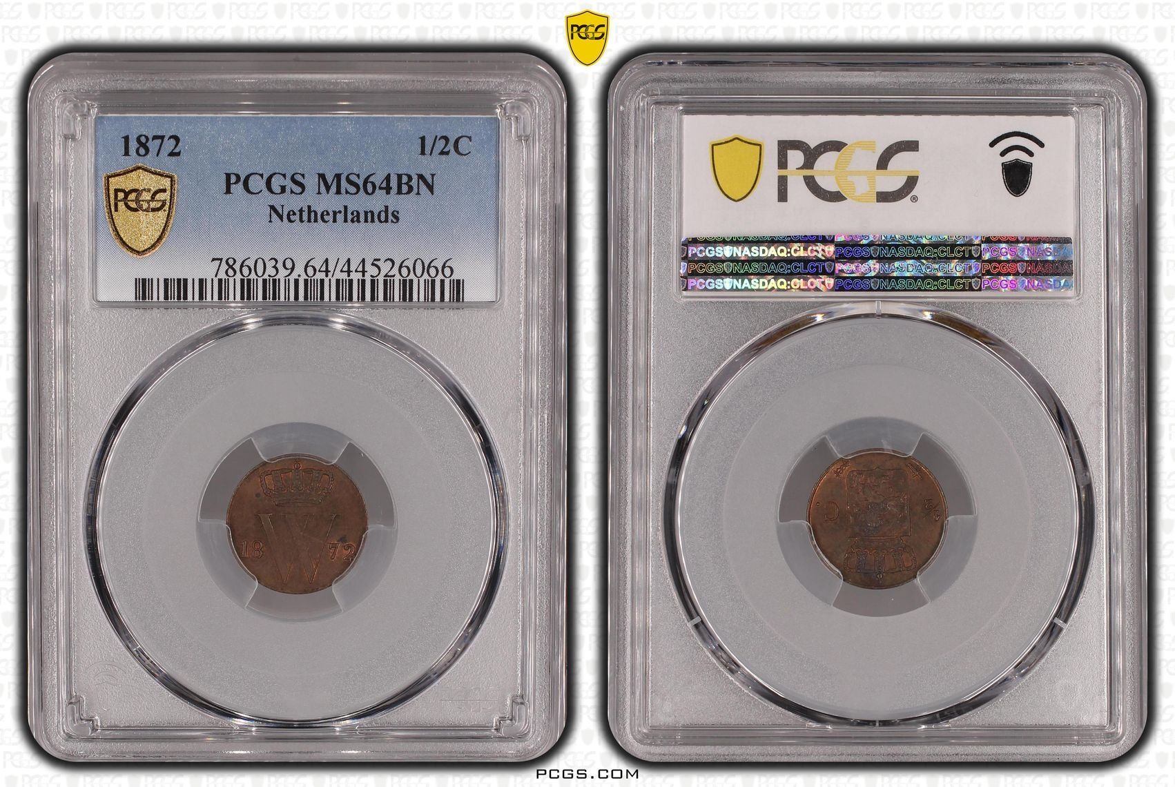 Netherlands ½ Cent 1872 PCGS MS64BN