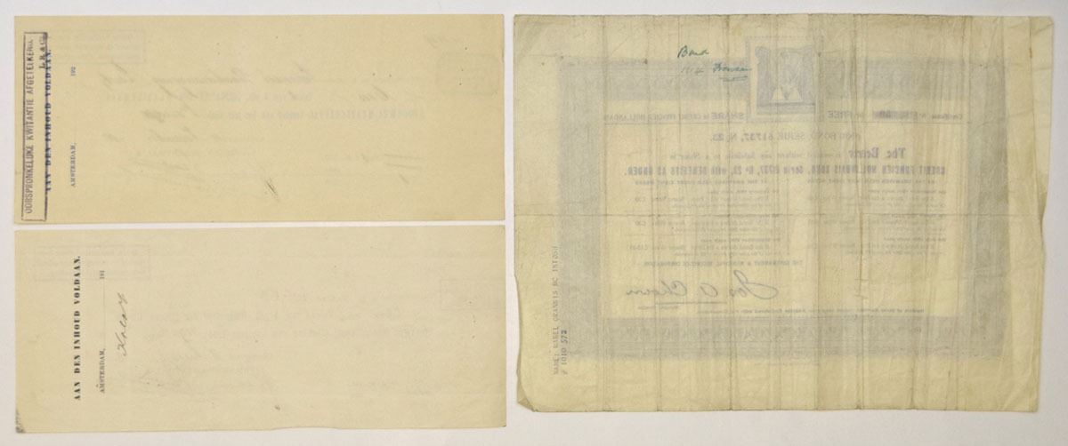 Netherlands, 1894-1904. Lot of 3 Documents, Includes: 1894, Riazan–Uralsk Railway and 1895, Vladikavkaz Railway loans printed in Dutch; 1904, Credit Foncier Hallandias Bond printed in English. All are in Fine to VF condition. (3). Sold "AS IS" no returns accepted.