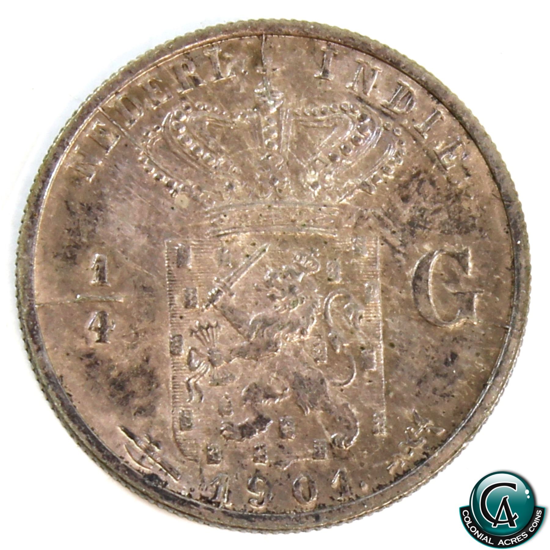 Netherlands-East Indies 1901 Silver 1/4 Gulden. A nice Choice UNC coin with lots of underlying luster. (KM305)