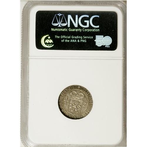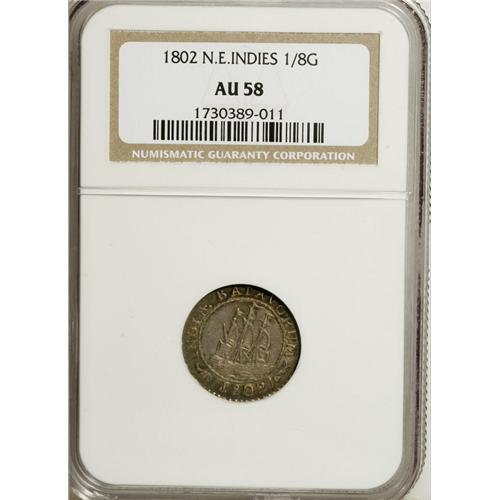 <B>Batavian Republic 1/8 Gulden 1802,</B></I> early sailing ship, KM79, 19 mm, AU58 NGC.<BR><BR><b>Shipping:</b> Coins & Currency (<a target="_blank" href="http://www.heritageauctions.com/common/shipping.php">view shipping information</a>)
