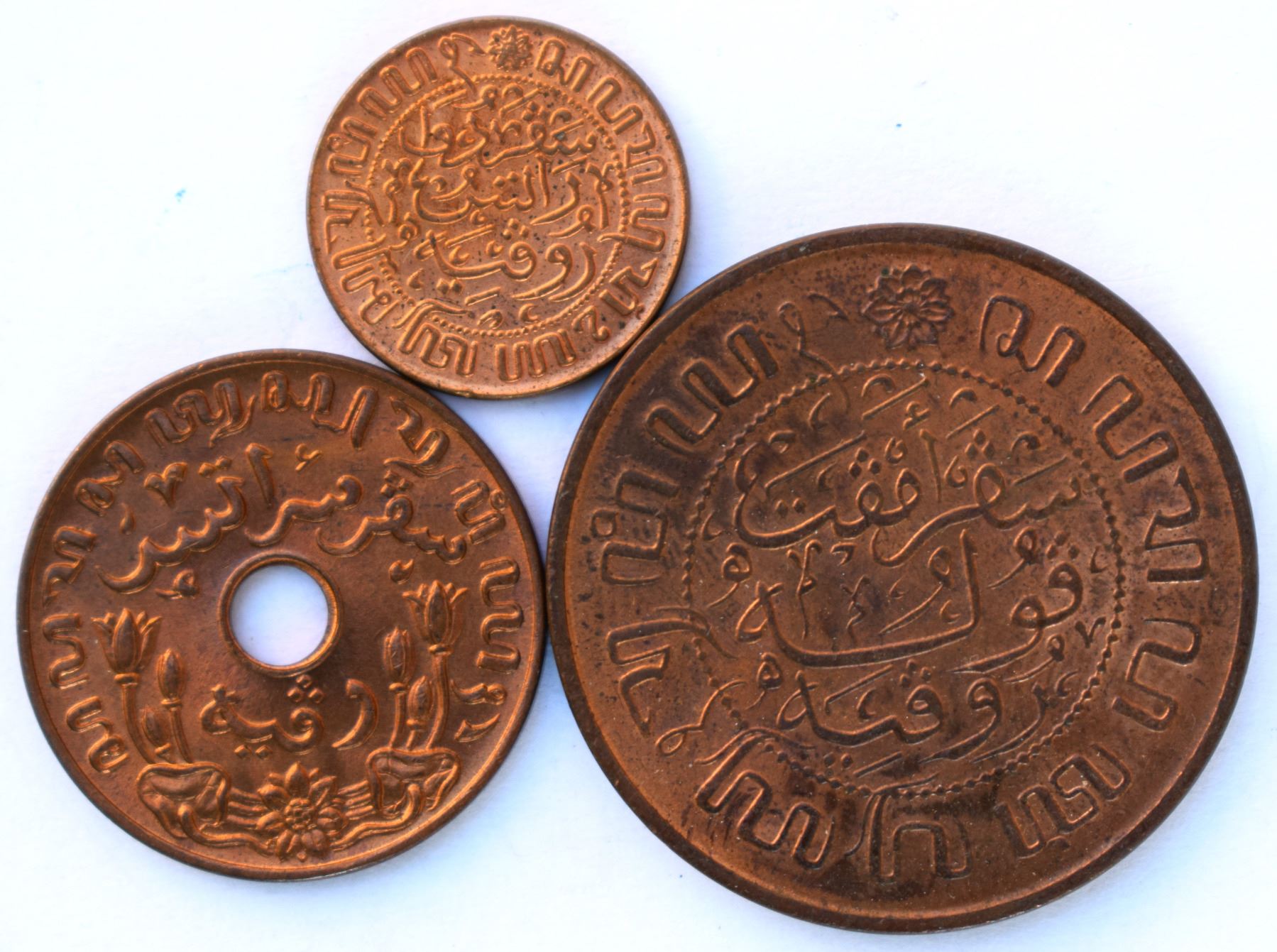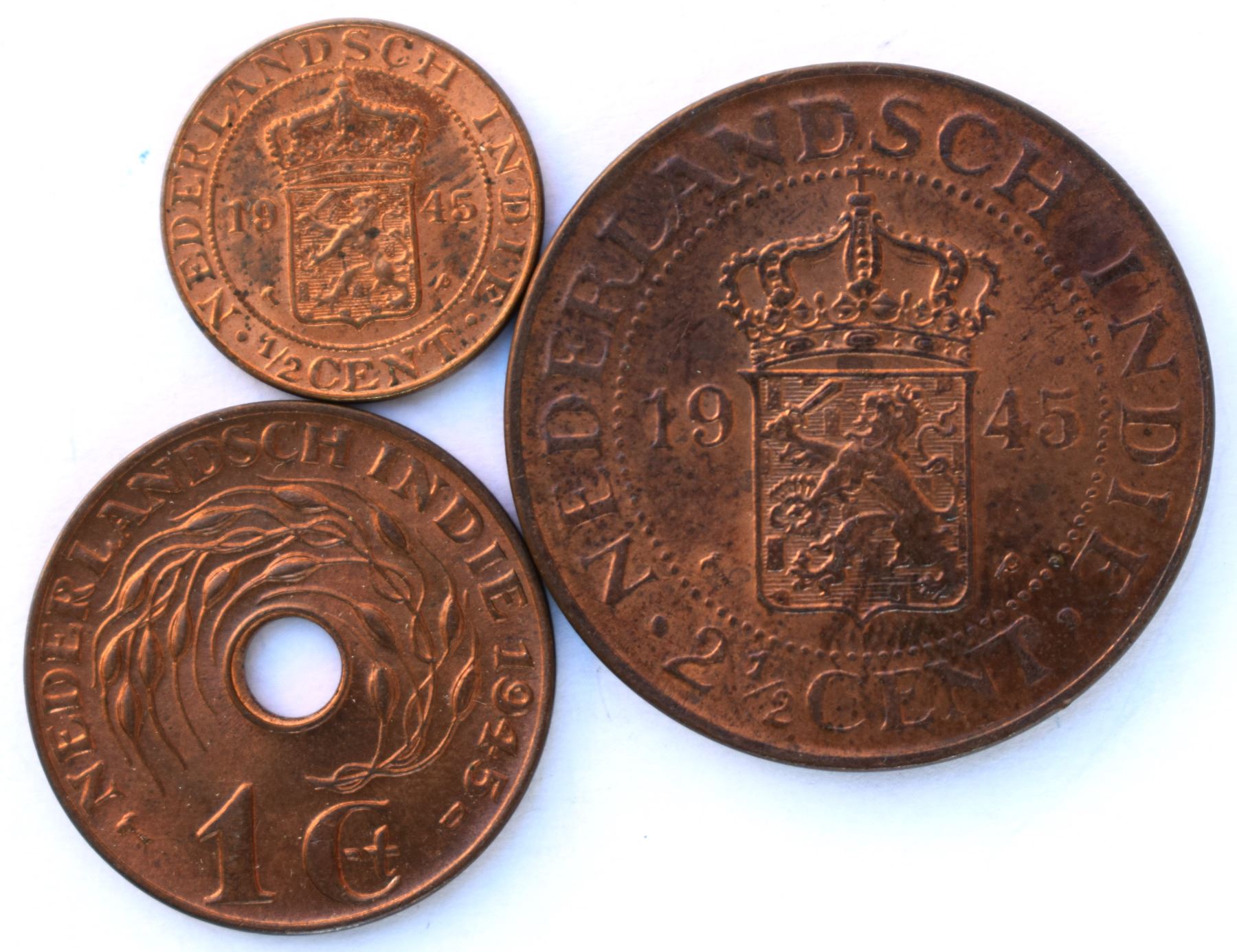 Netherlands East Indies, ½ C 1945P, 1C 1945D and 2½ C 1945P Bronze, All Mint State Red / Red-Brown (3)
