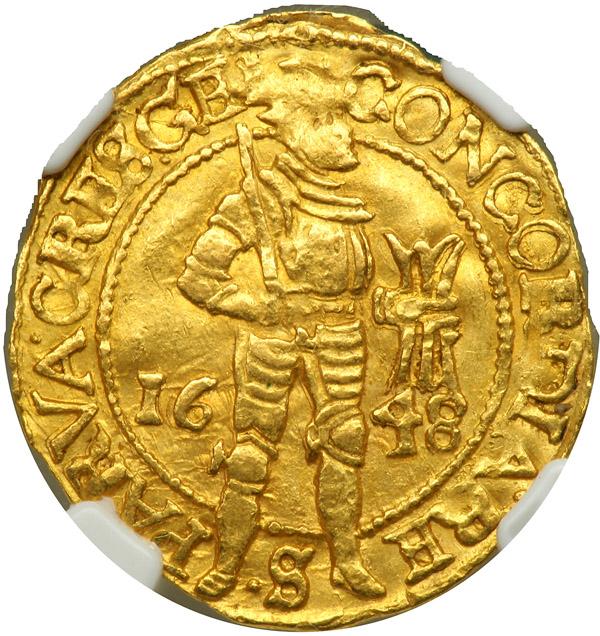 Netherlands - Gelderland. Ducat, 1648. Fr-237. Knight standing. Reverse: Tablet with legend. NGC graded EF-40.