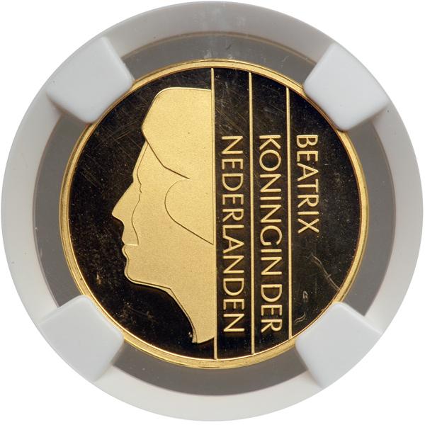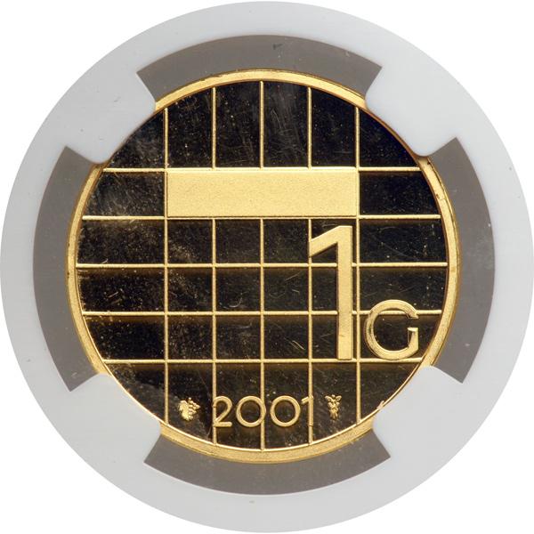 Netherlands. Gulden, 2001. KM-205b. Weight 0.4243 ounce. Beatrix. Head left with vertical inscription. Reverse: Value and date. NGC graded Proof 64 Ultra Cameo.