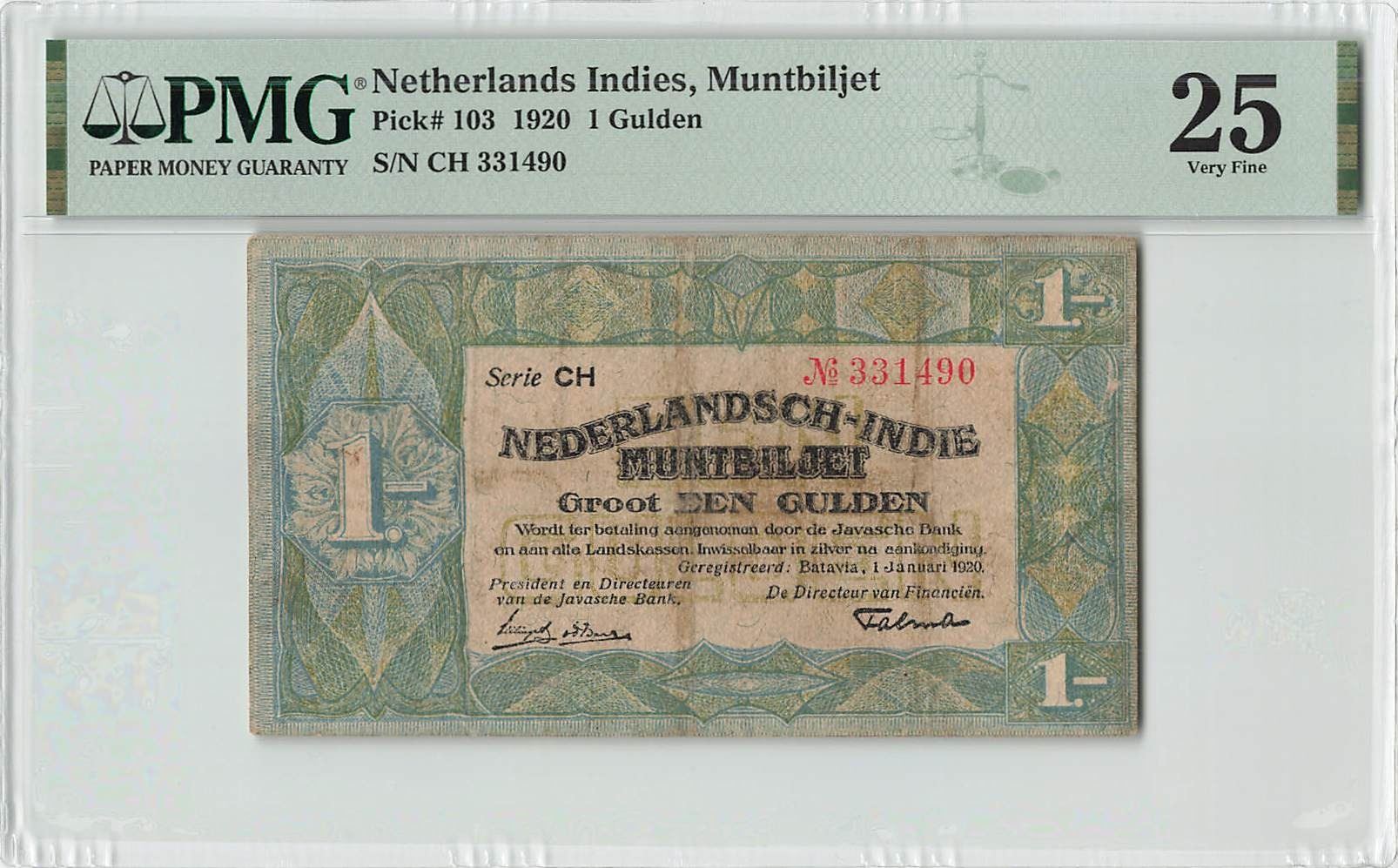 Netherlands Indies 1 Gulden 1920 Pick 103 PMG Very Fine 25