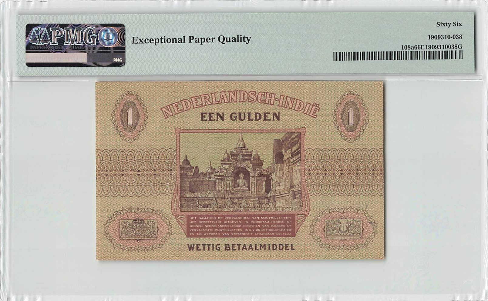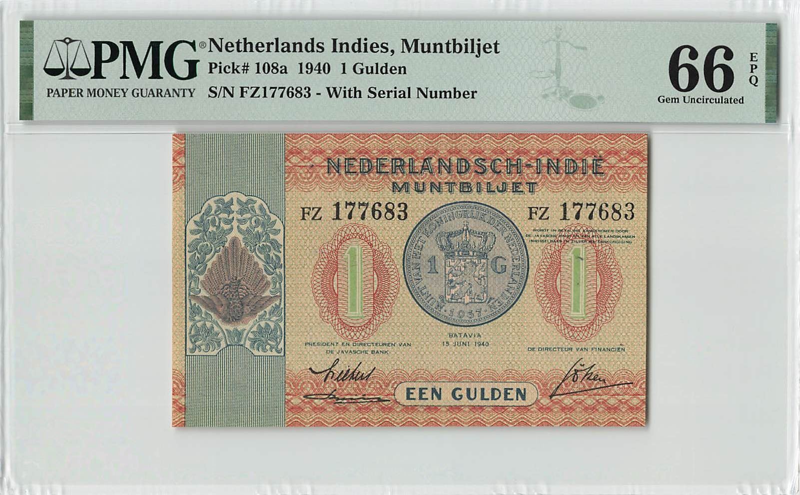Netherlands Indies 1 Gulden 1940 Pick 108a PMG Gem UNC 66 EPQ