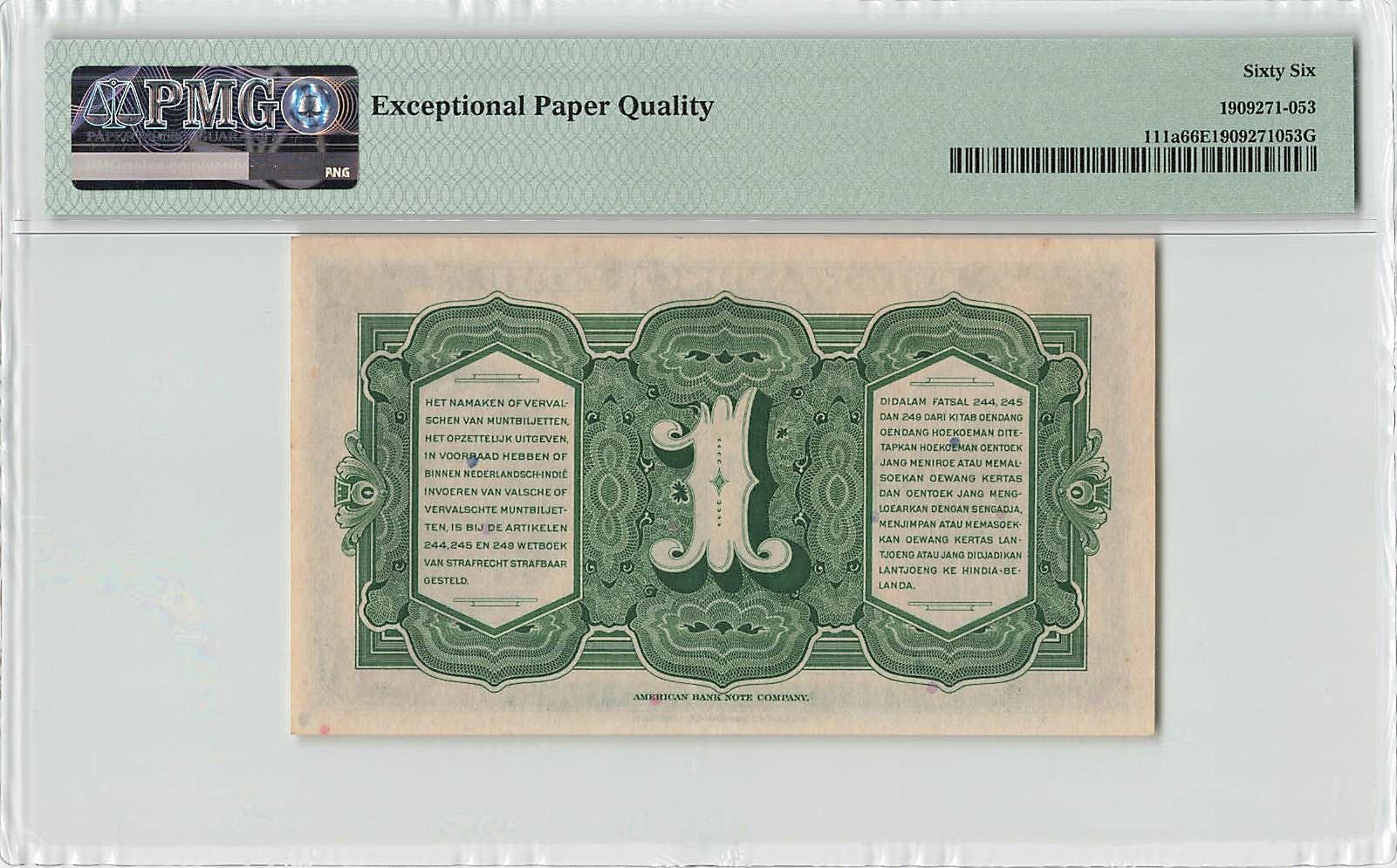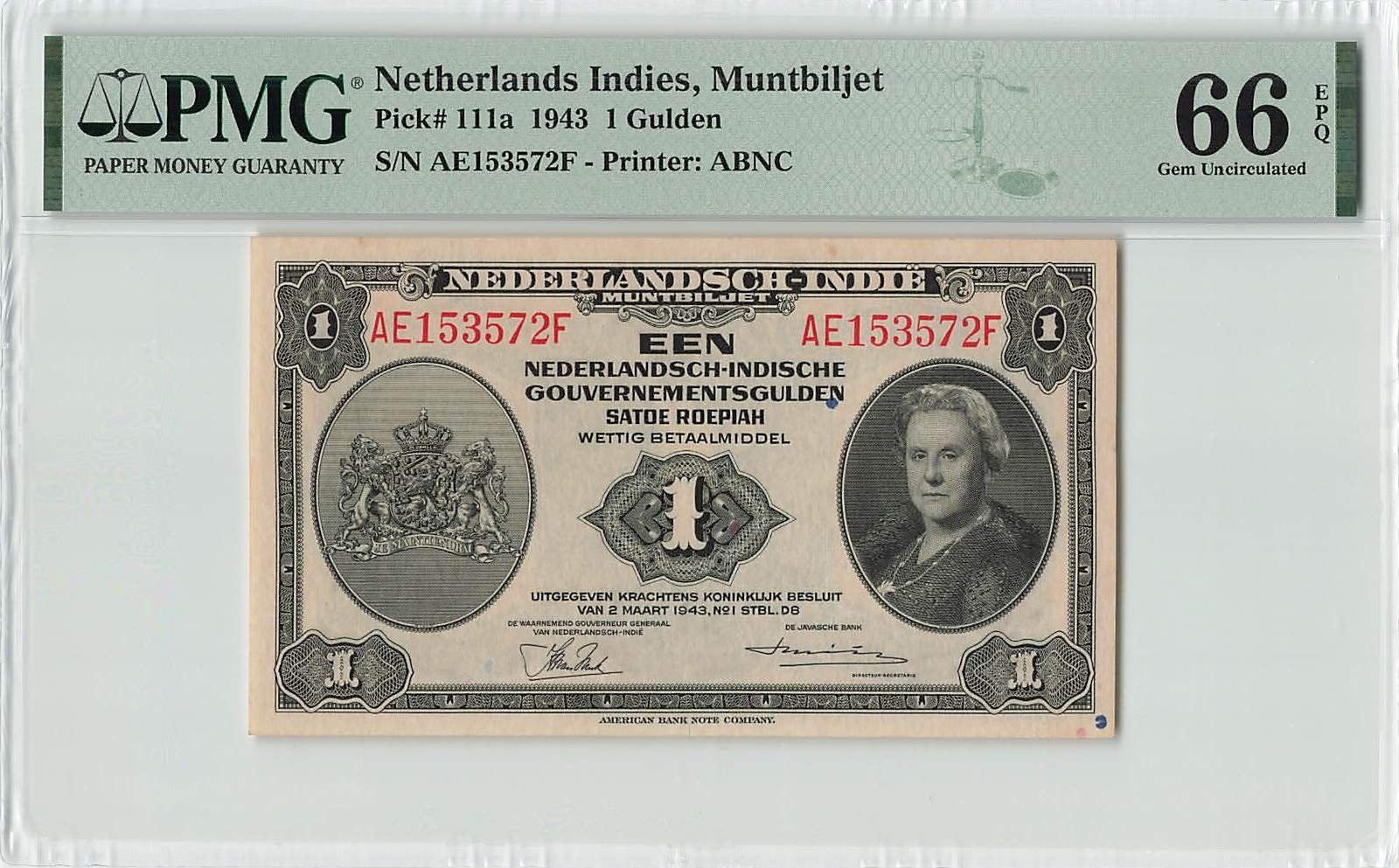 Netherlands Indies 1 Gulden 1943 ABNC Pick 111a PMG Gem Uncirculated 66 EPQ