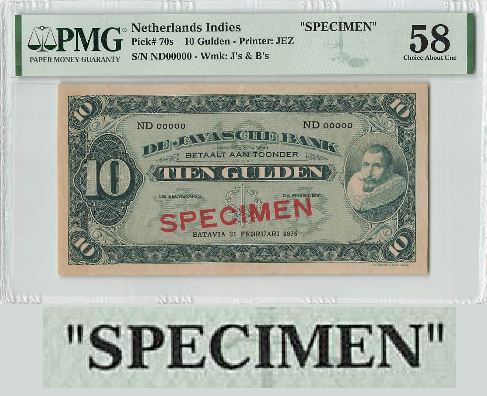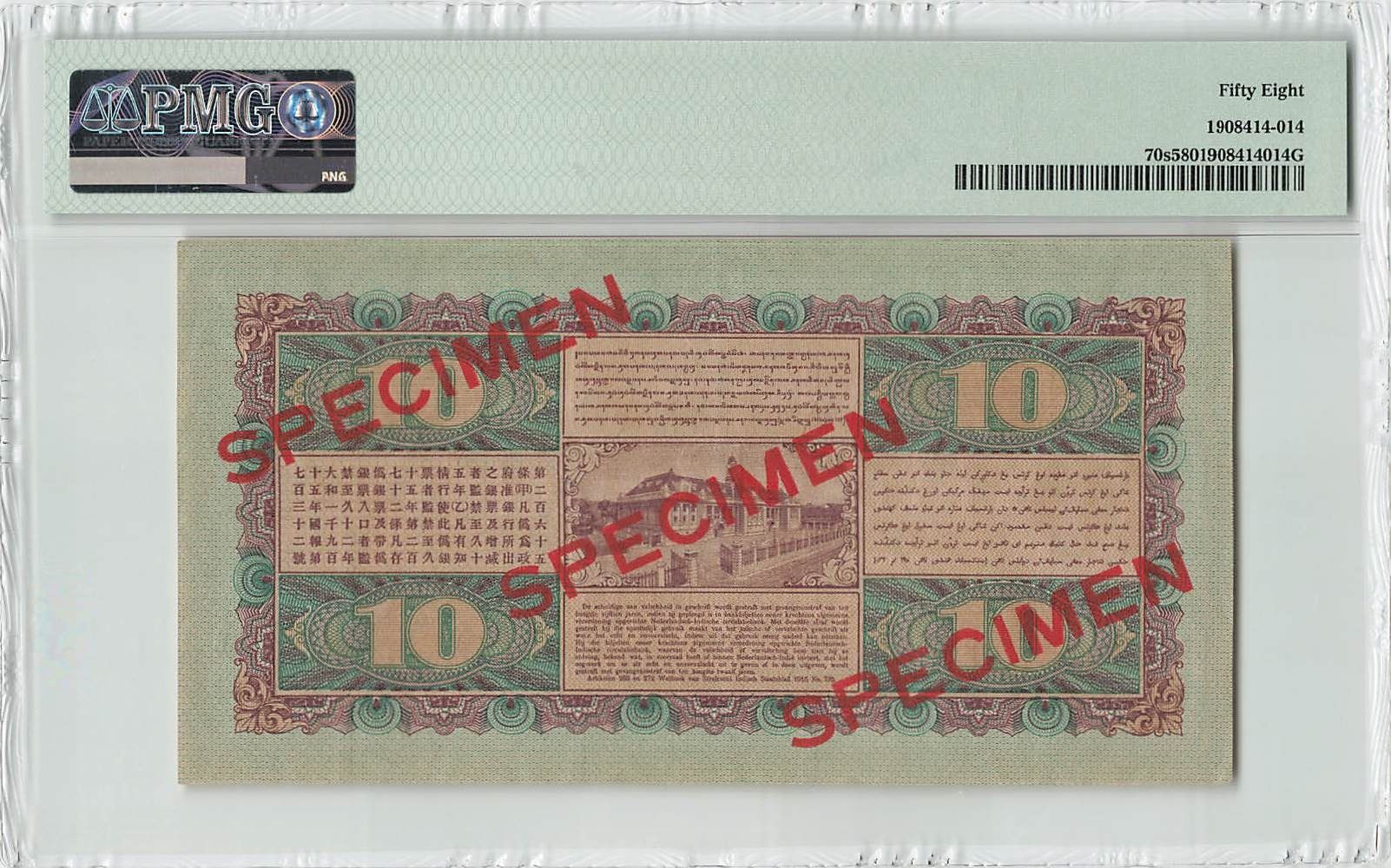 Netherlands Indies 10 Gulden 1926 Specimen J.P Coen Pick 70s PMG Choice About UNC 58