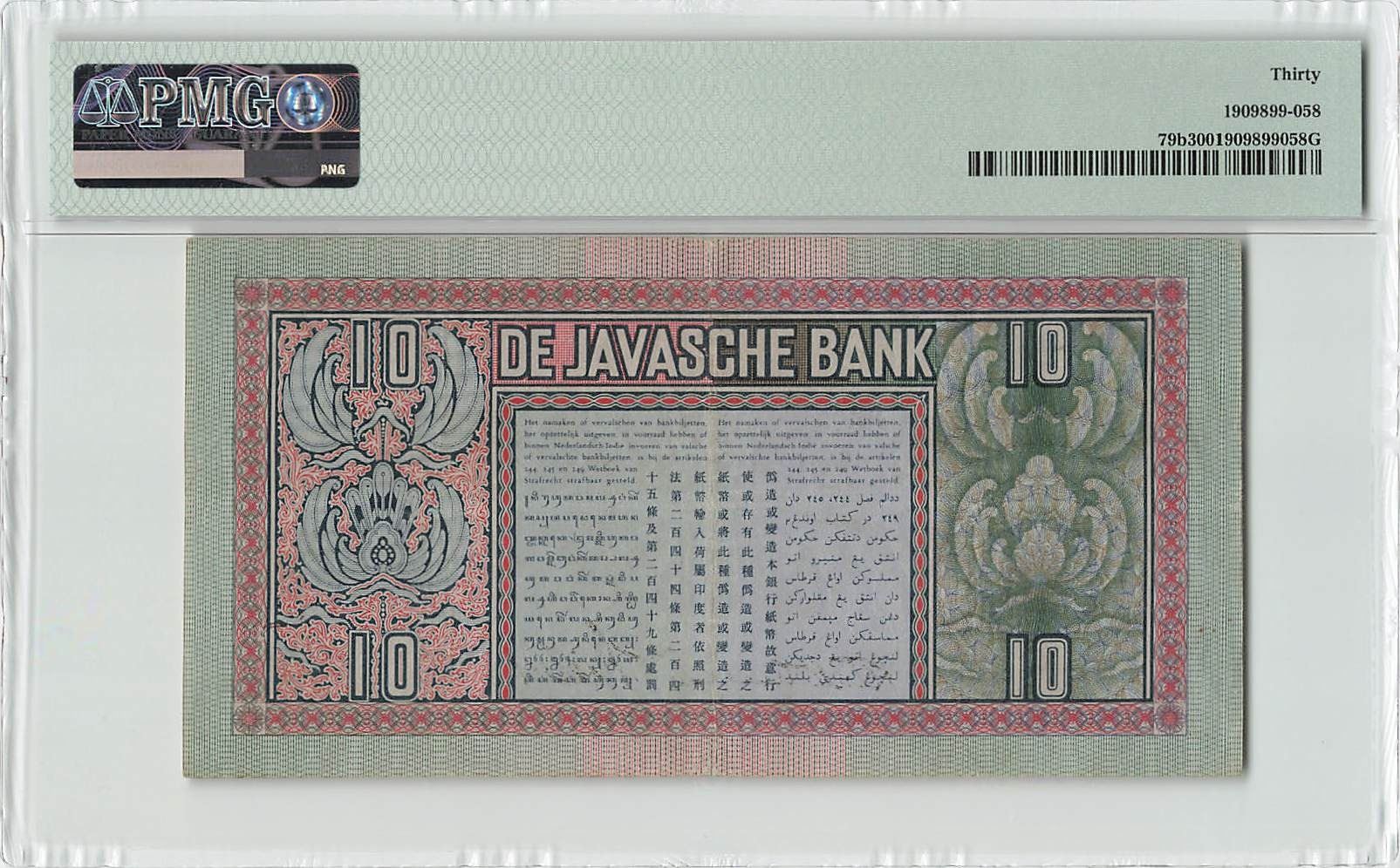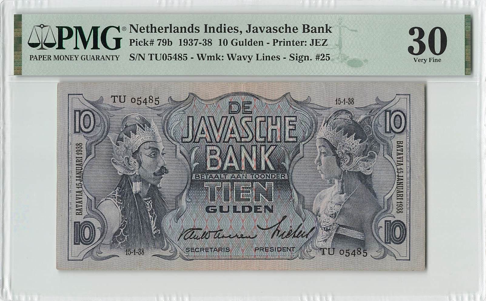 Netherlands Indies 10 Gulden 1938 Javanese Dancers Pick 79b PMG Very Fine 30