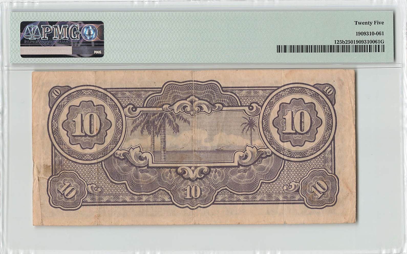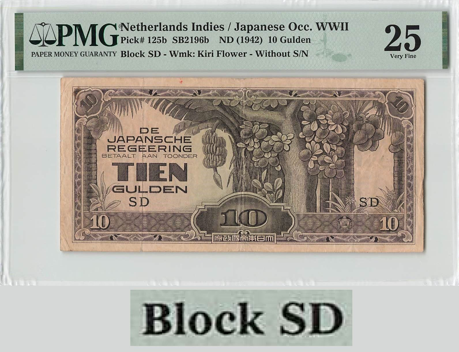 Netherlands Indies 10 Gulden 1942 Block SD Pick 125b PMG Very Fine 25