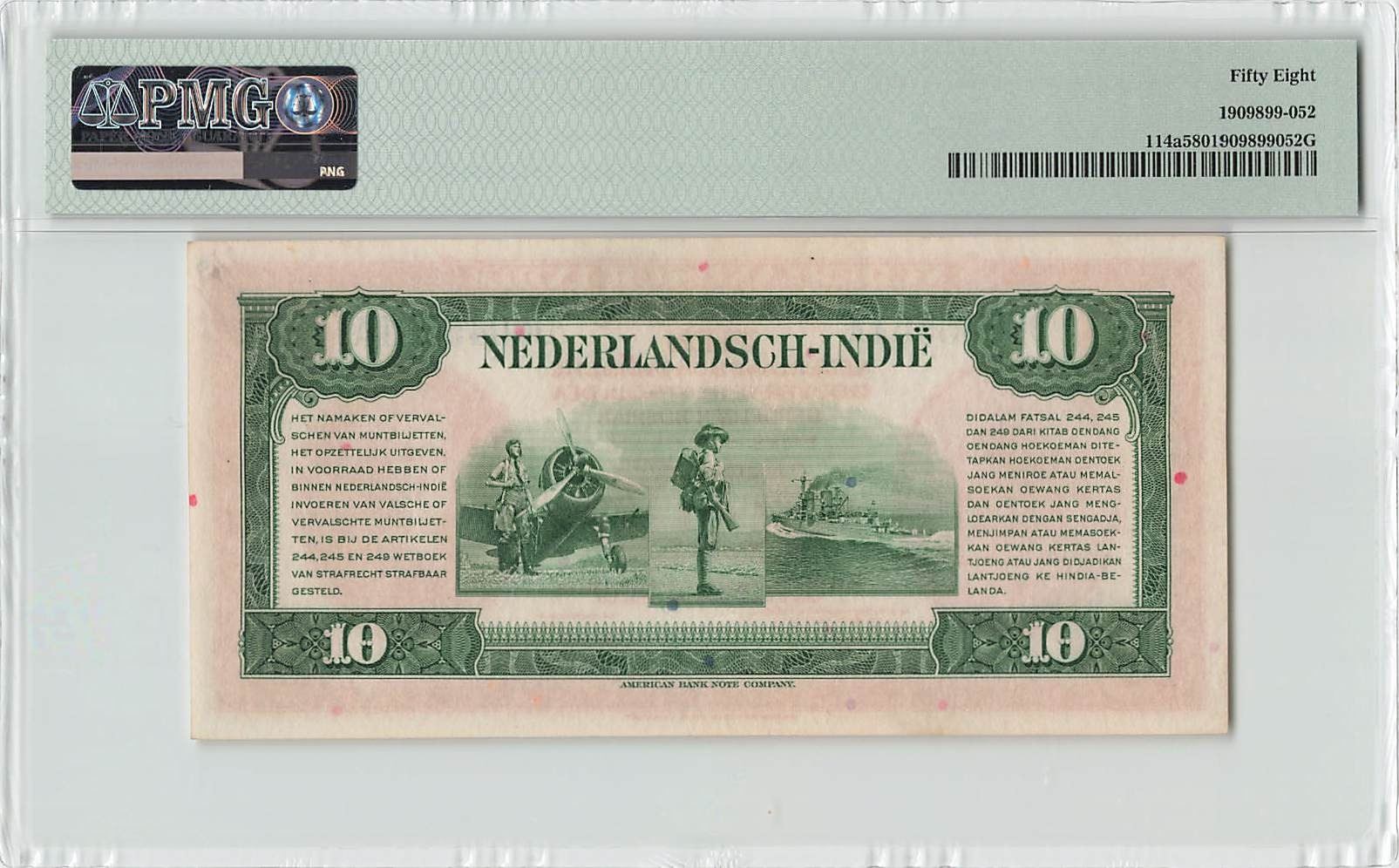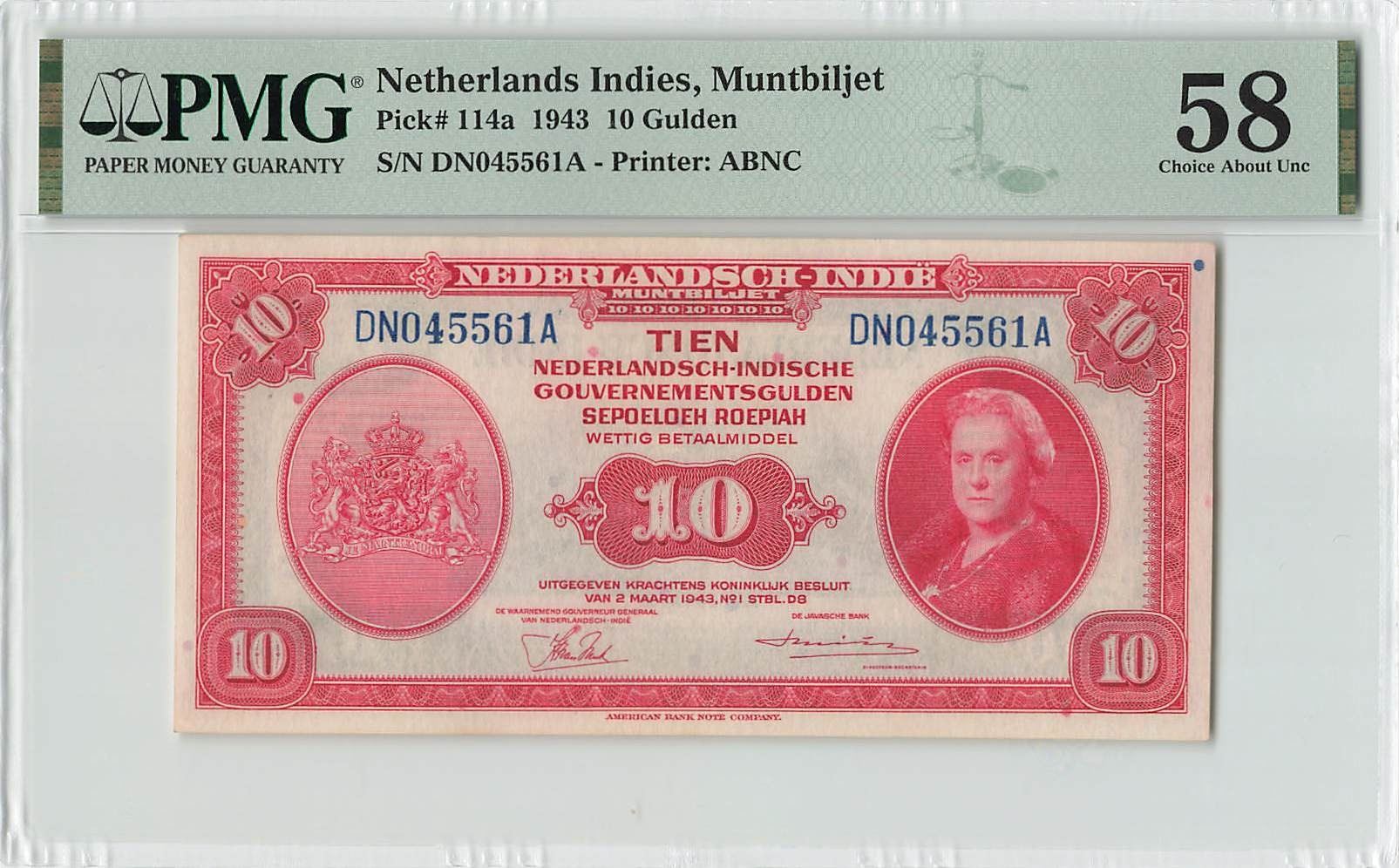 Netherlands Indies 10 Gulden 1943 ABNC Pick 114a PMG Choice About UNC 58