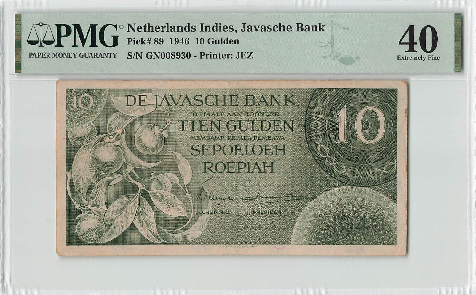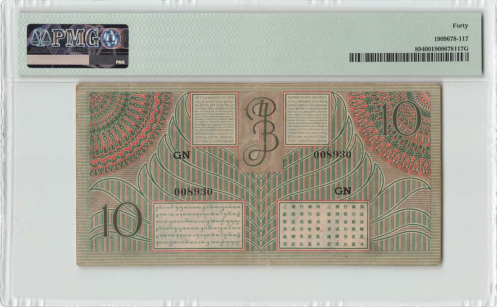 Netherlands Indies 10 Gulden 1946 JEZ Pick 89 PMG Extremely Fine 40