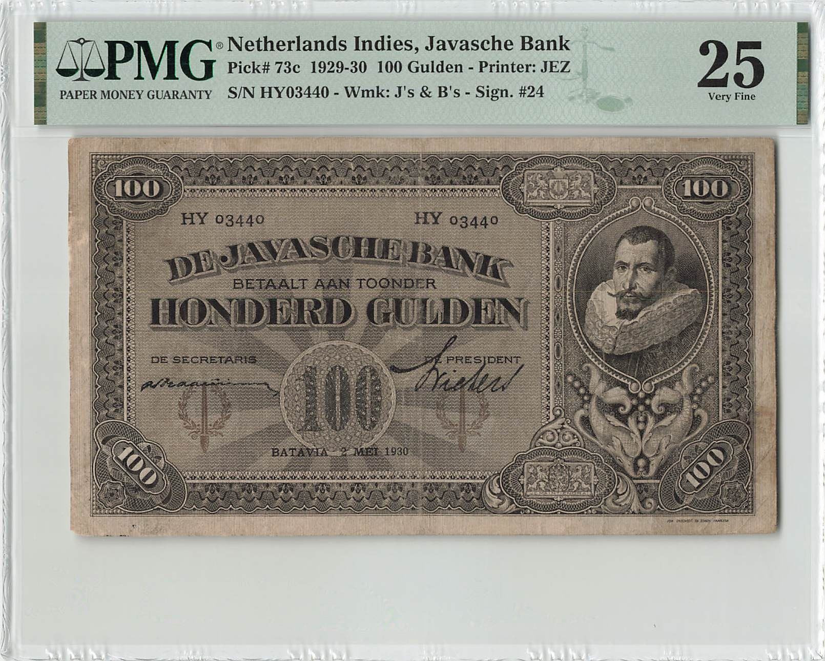 Netherlands Indies 100 Gulden 1930 J.P. Coen JEZ Pick 73c PMG Very Fine 25