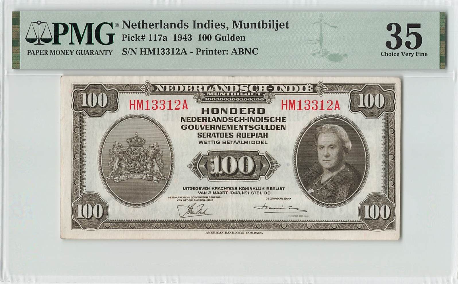 Netherlands Indies 100 Gulden 1943 State Note Pick 117a PMG Choice Very Fine 35