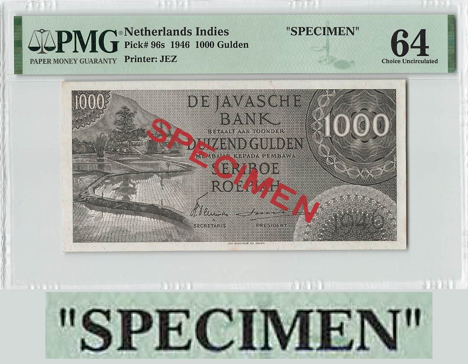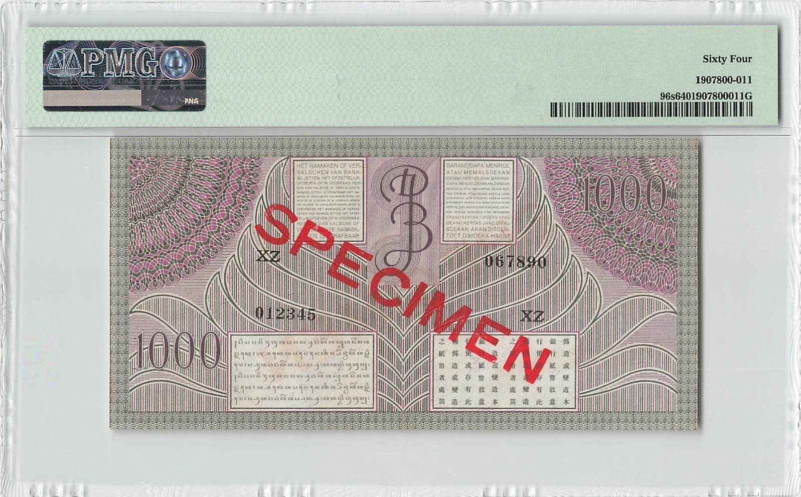Netherlands Indies 1000 Gulden 1946 Specimen Javasche Bank Pick 96s PMG Choice Uncirculated 64