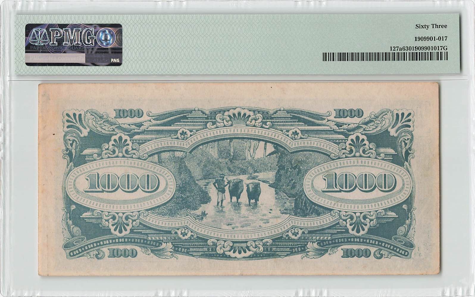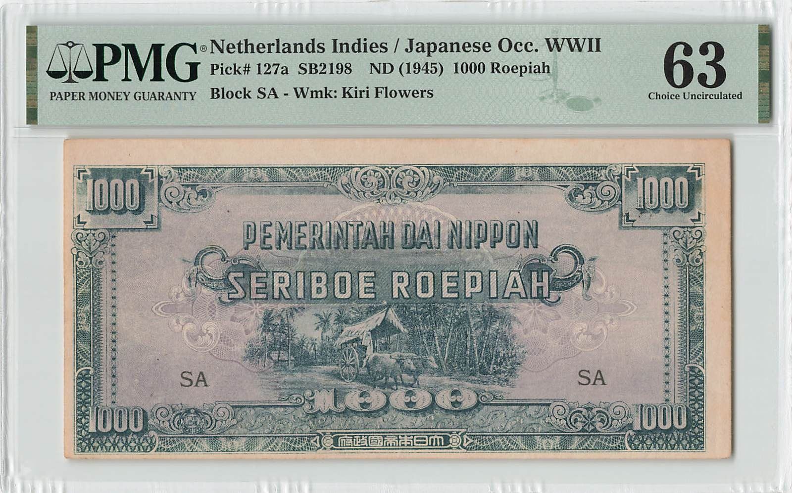 Netherlands Indies 1000 Roepiah 1945 Pick 127a PMG Choice UNC 63