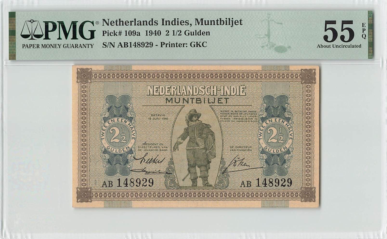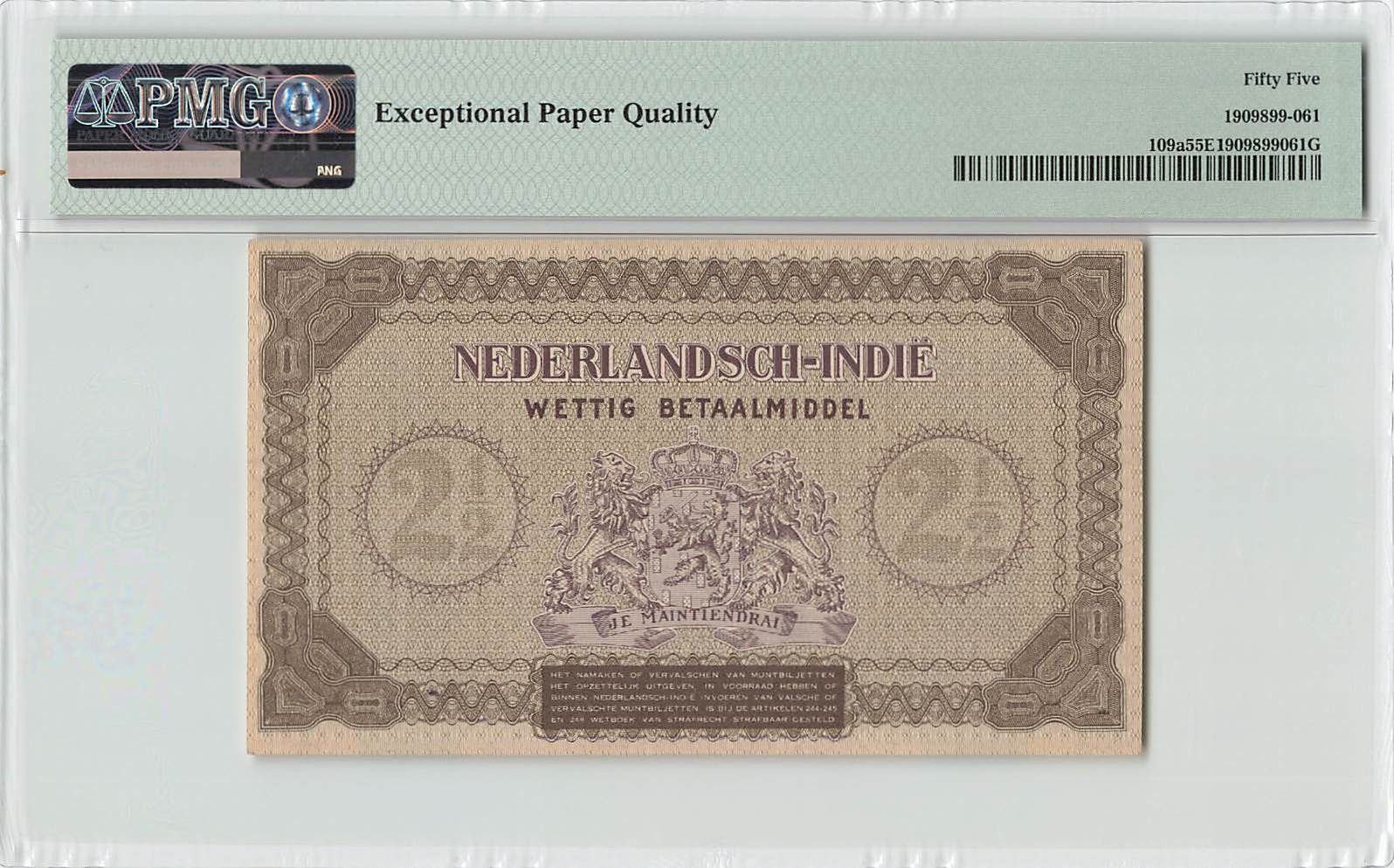 Netherlands Indies 2½ Gulden 1940 Pick 109a PMG About Uncirculated 55 EPQ
