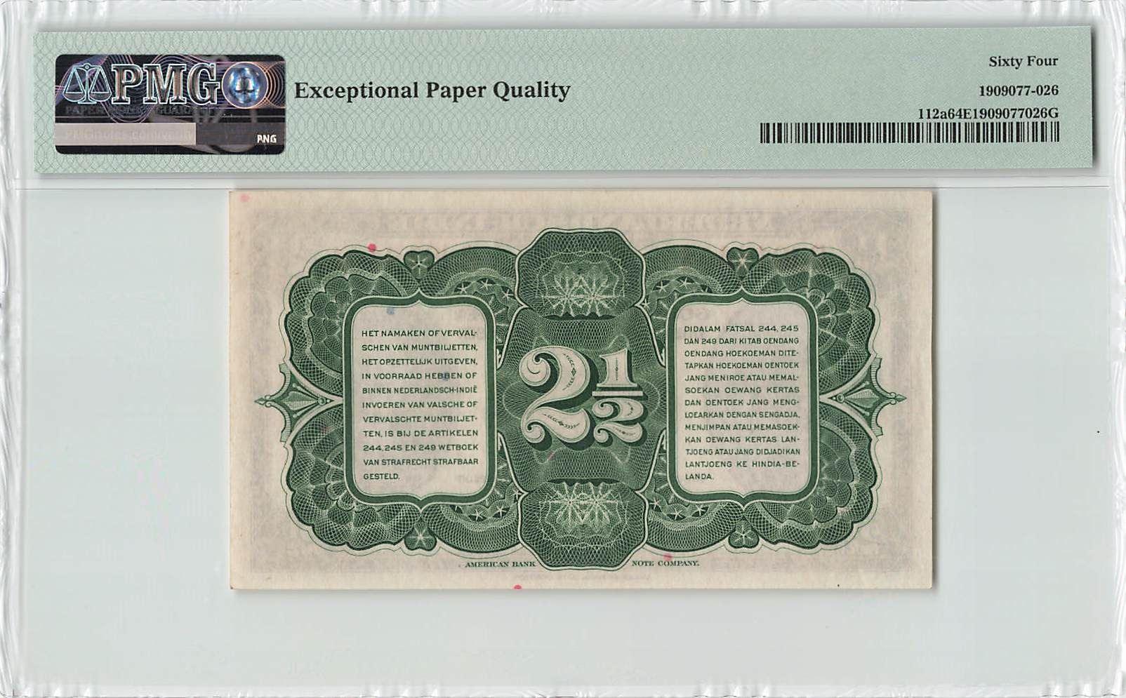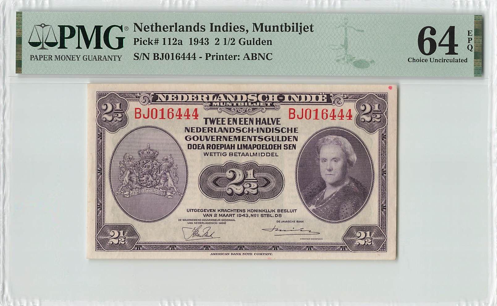 Netherlands Indies 2½ Gulden 1943 ABNC Pick 112a PMG Choice UNC 64 EPQ
