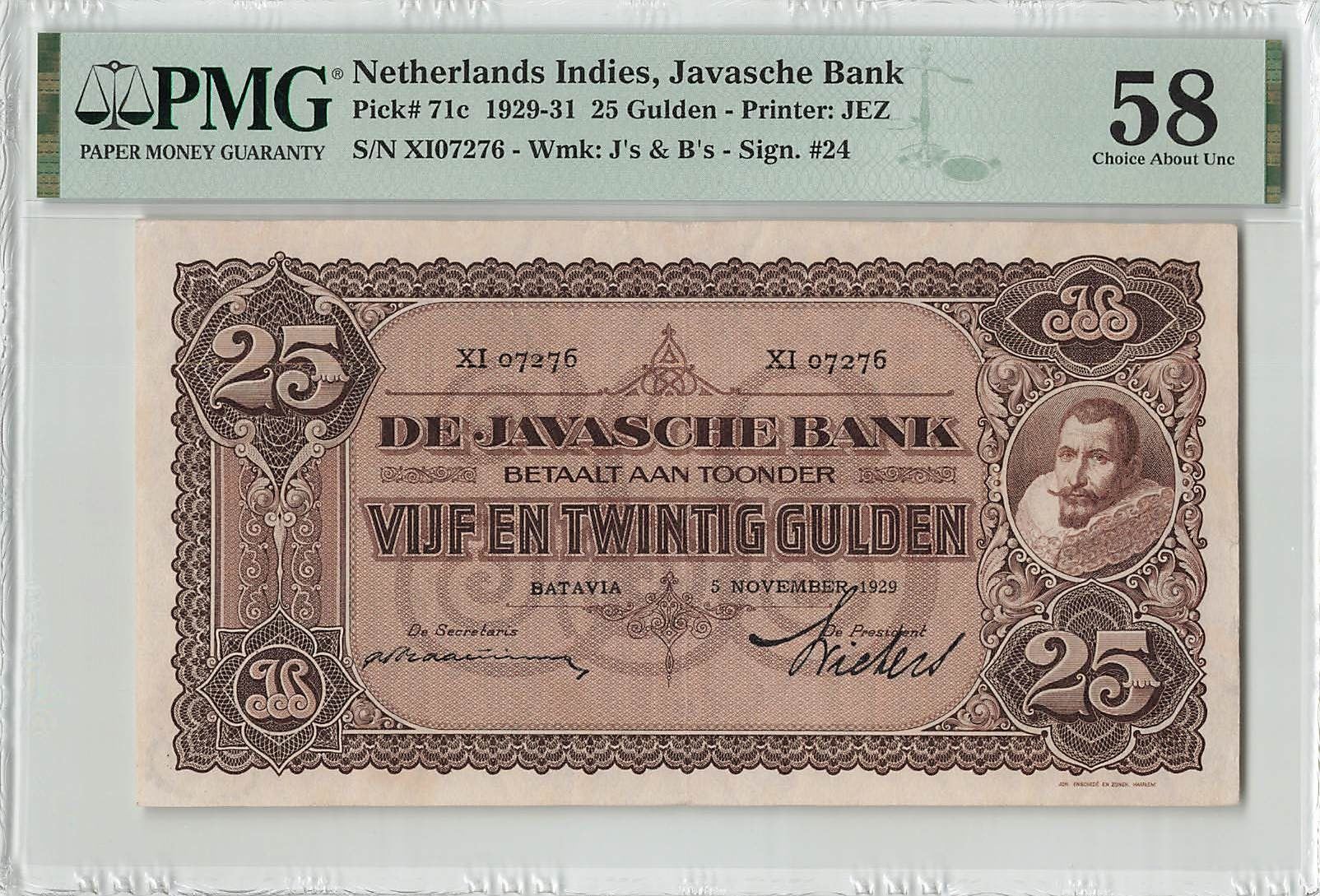 Netherlands Indies 25 Gulden 1929 J.P Coen Pick 71c PMG Choice About UNC 58