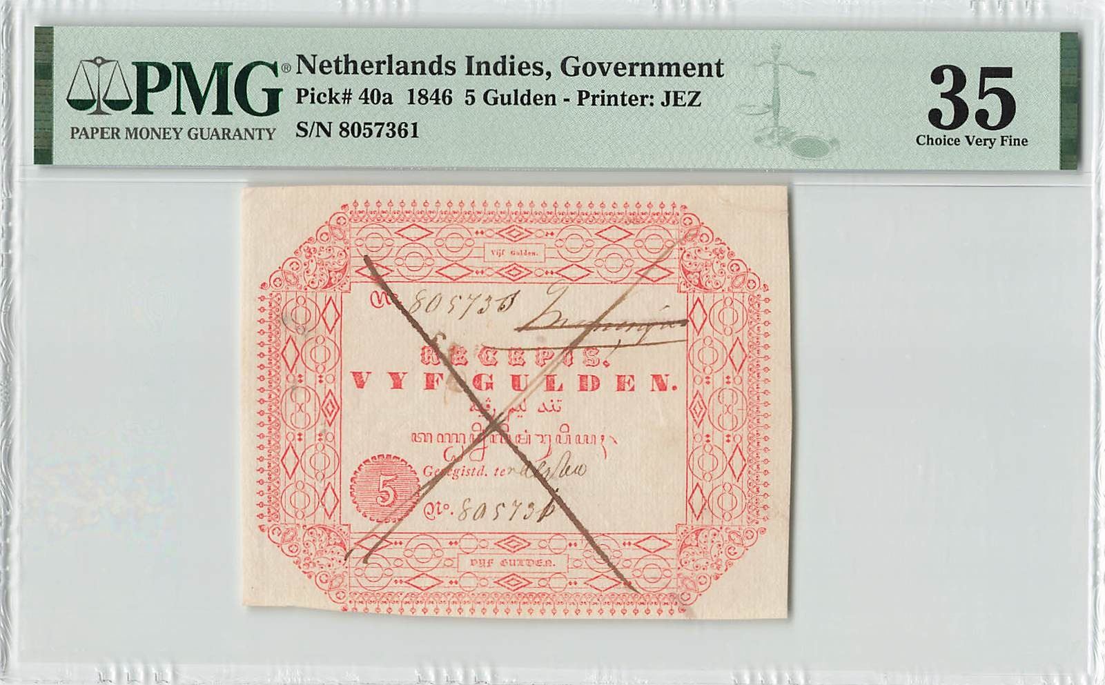 Netherlands Indies 5 Gulden 1846 Issued Pick 40a PMG Choice Very Fine 35