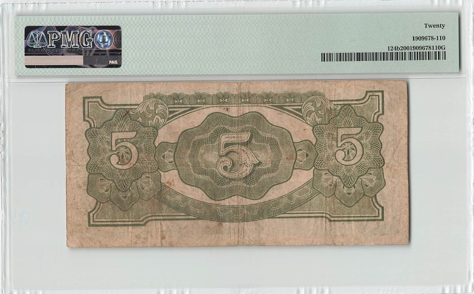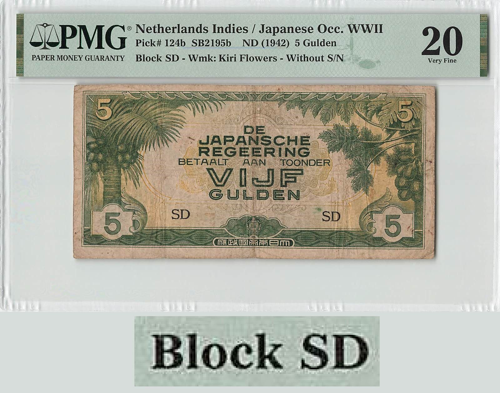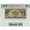 Netherlands Indies 5 Gulden 1942 Block SD Pick 124b PMG Very Fine 20