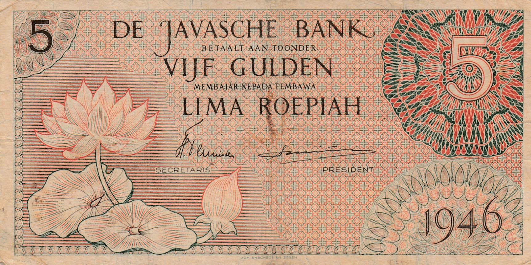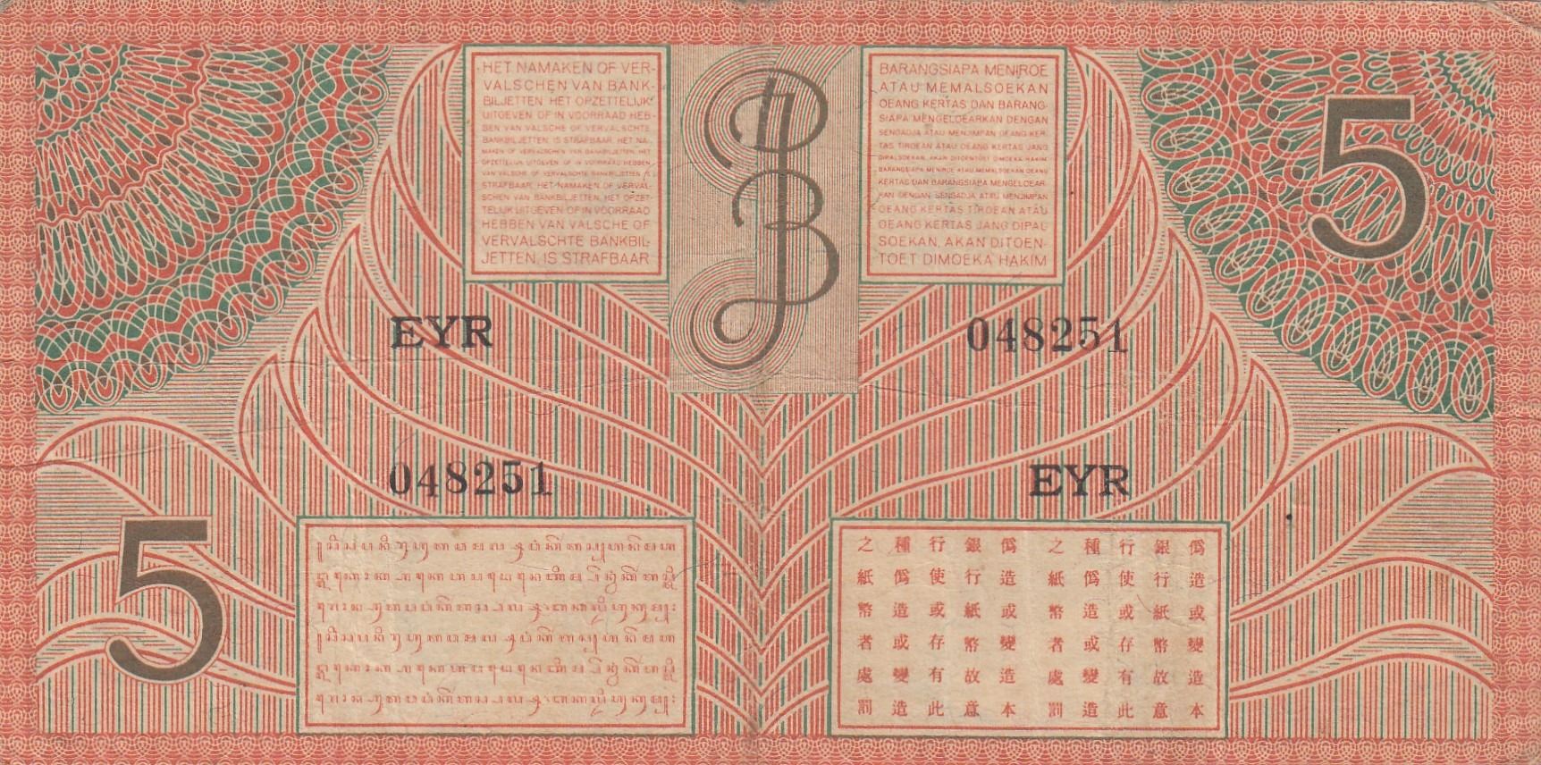 Netherlands Indies, 5 Gulden, 1946, VF (-), p88br/serial number: EYR 048251