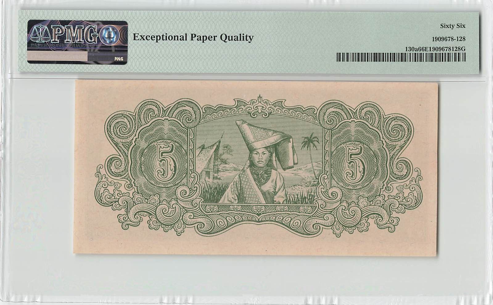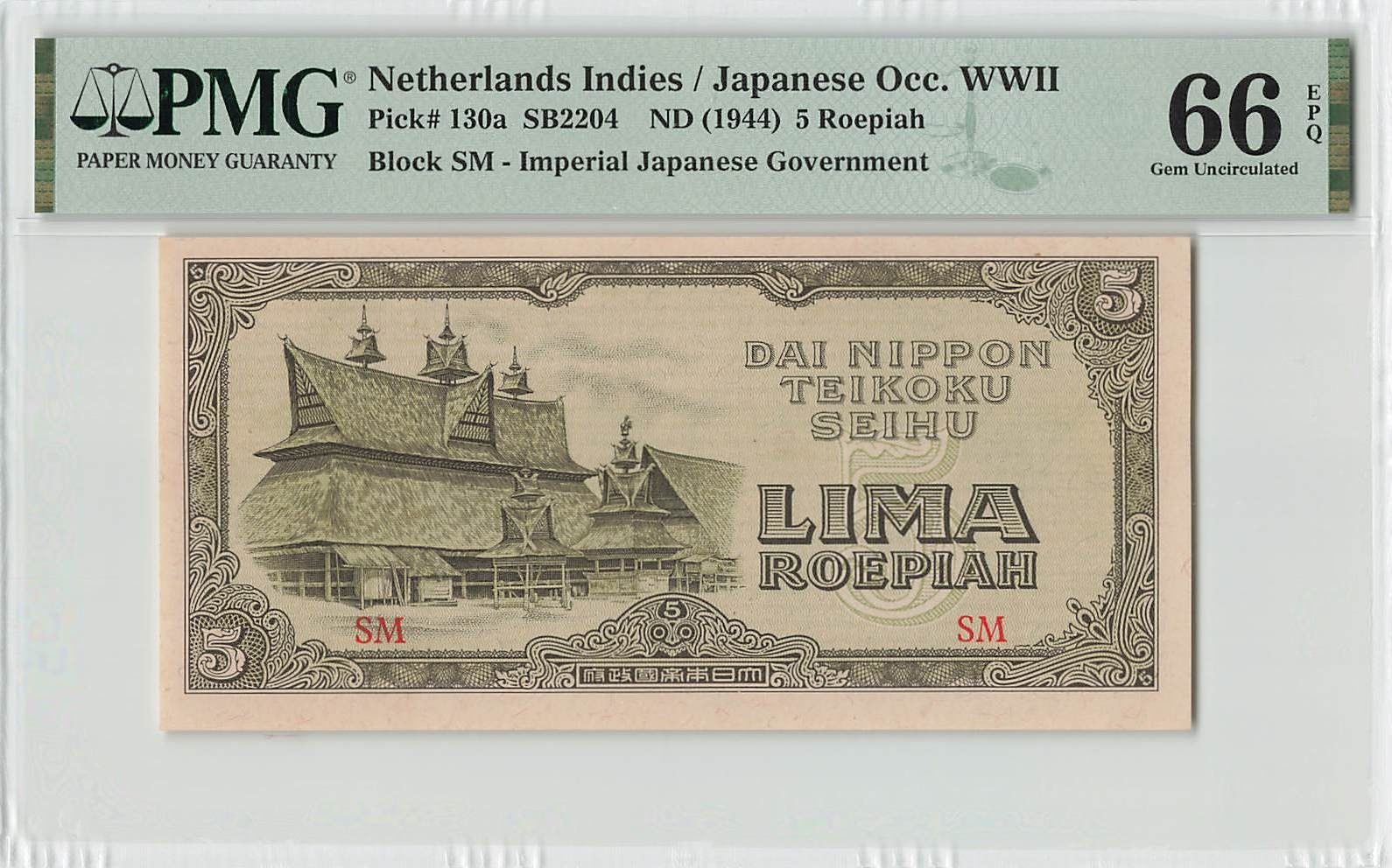 Netherlands Indies 5 Roepiah 1944 Pick 130a PMG Gem Uncirculated 66 EPQ