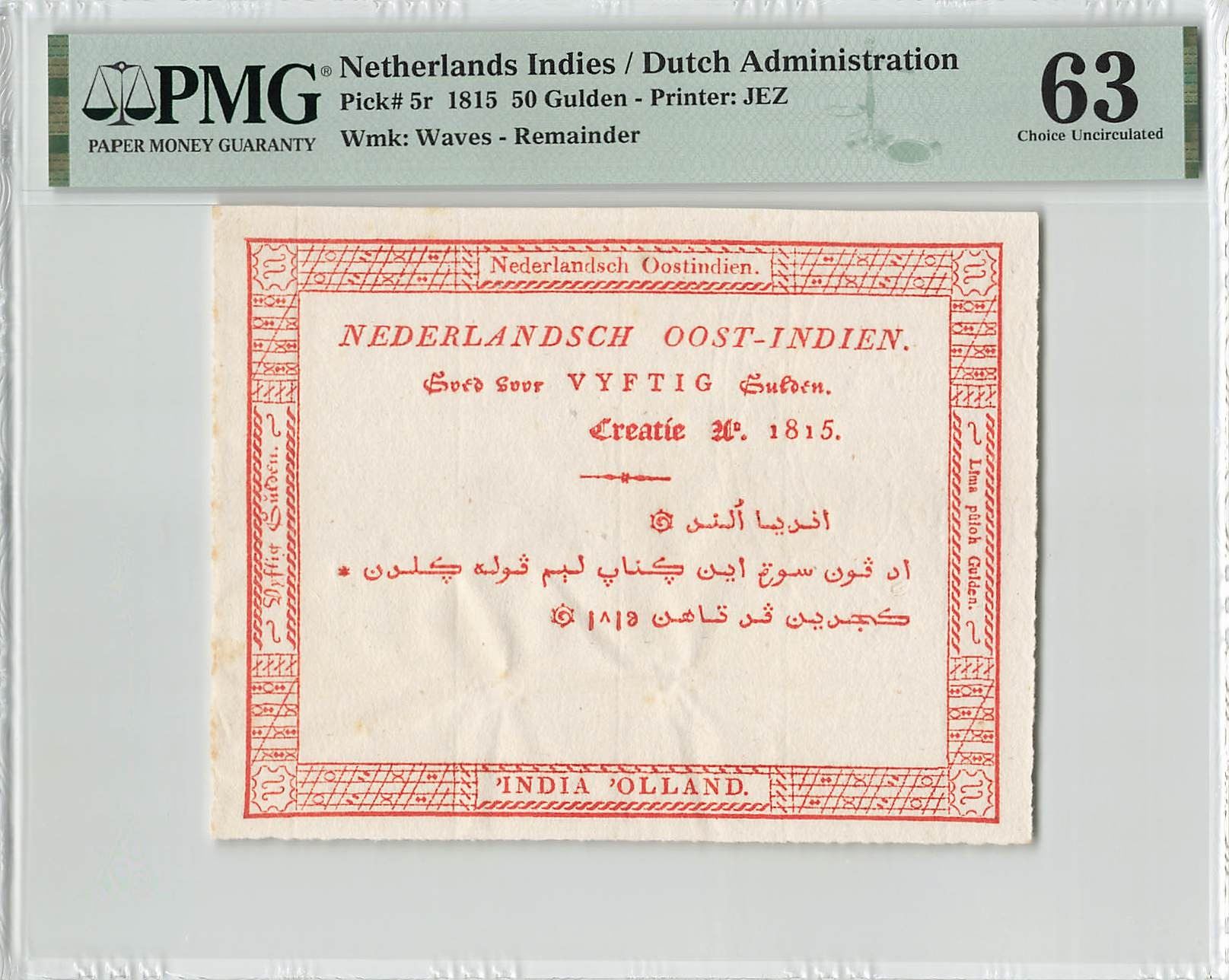 Netherlands Indies 50 Gulden 1815 Pick 5r PMG Choice UNC 63