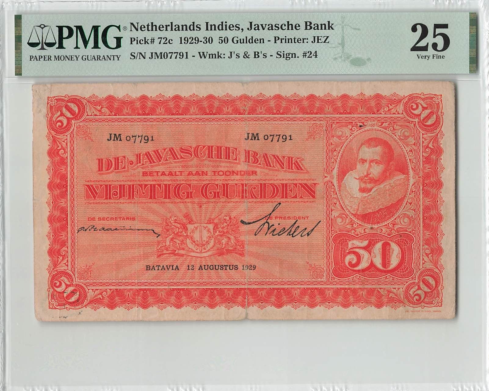 Netherlands Indies 50 Gulden 1929 J.P. Coen Pick 72c PMG Very Fine 25