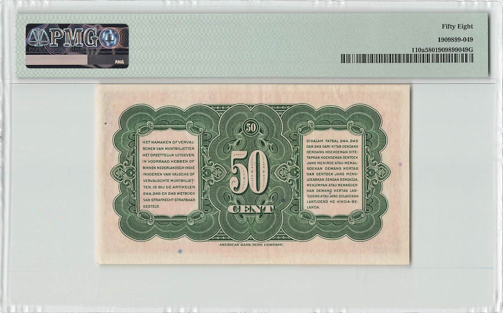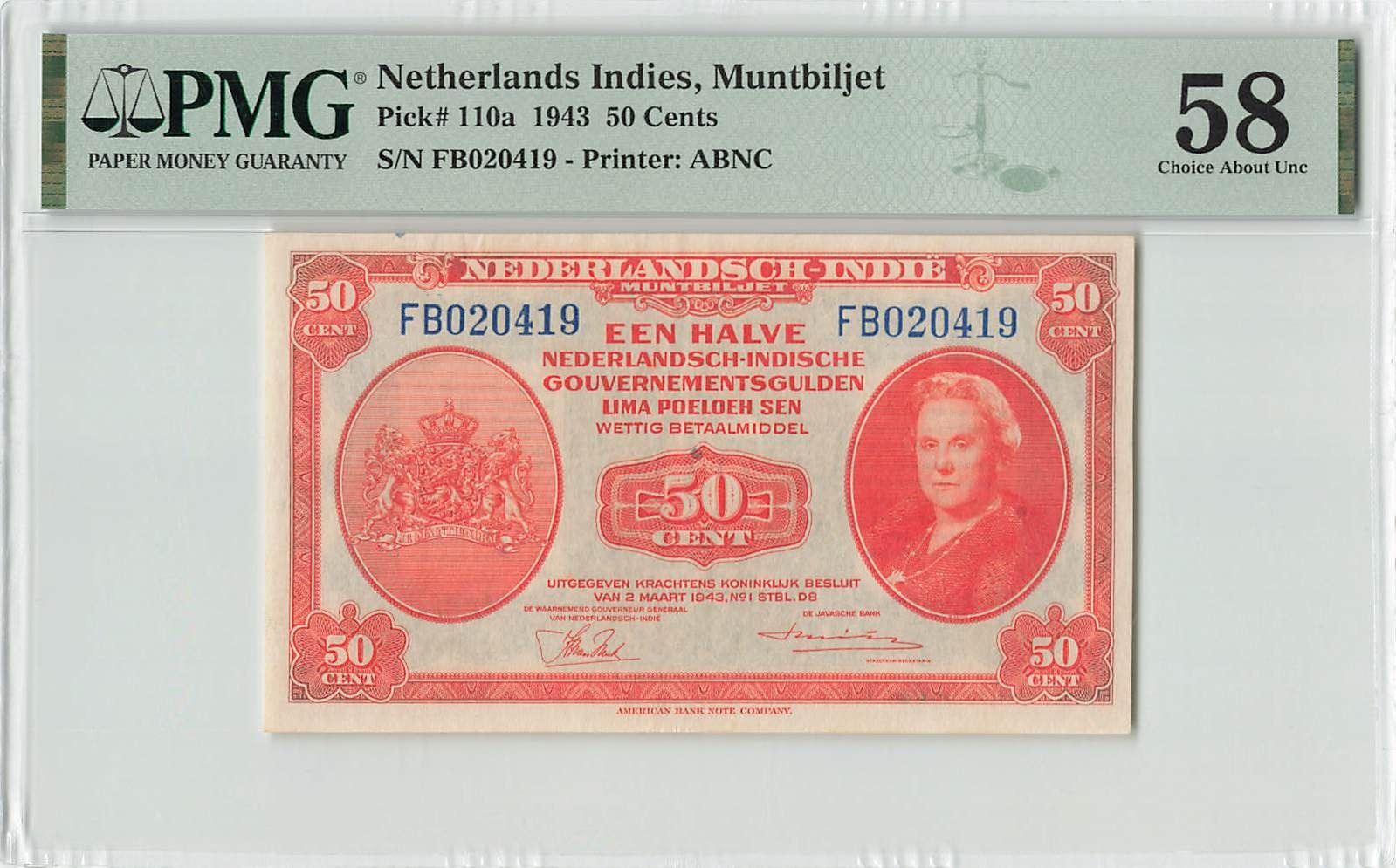 Netherlands Indies ½ Gulden 1943 ABNC Pick 110a PMG Choice About UNC 58