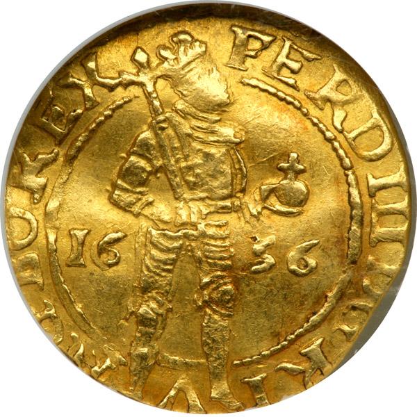 Netherlands - Kampen. Ducat, 1656. Fr-161; KM-44. Ferdinand III standing. Reverse: Legend in tablet. NGC graded EF-45.