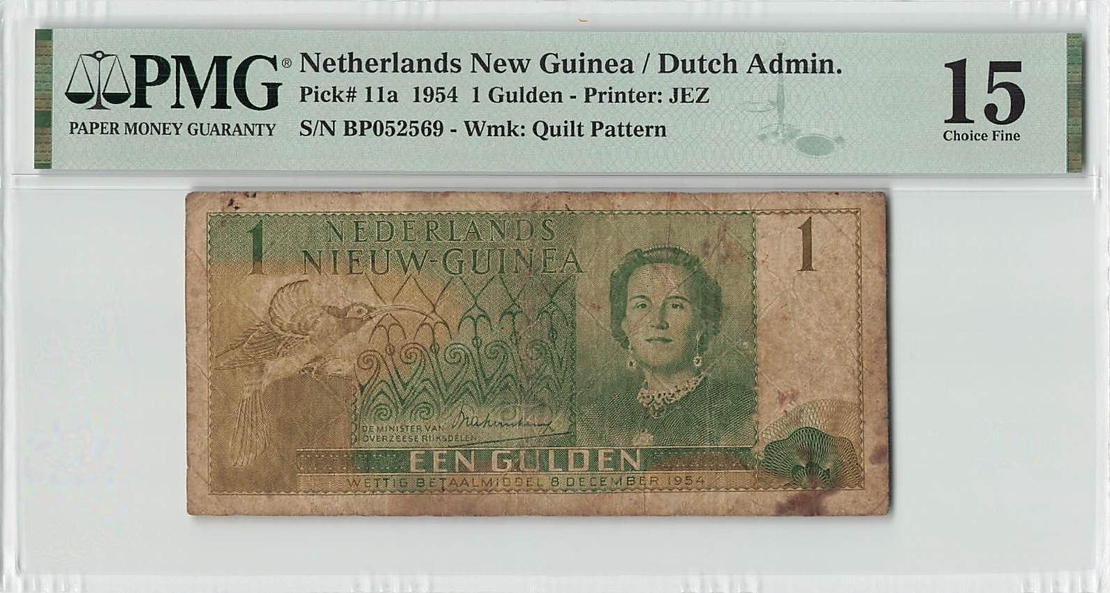 Netherlands New Guinea 1 Gulden 1954 Pick 11a PMG Choice Fine 15