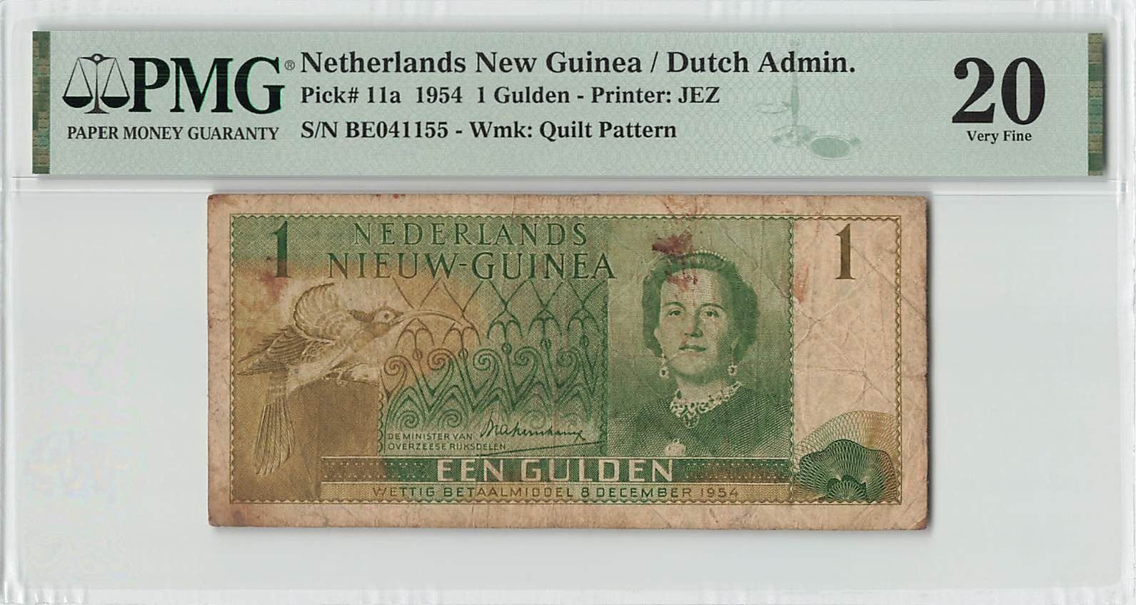 Netherlands New Guinea 1 Gulden 1954 Pick 11a PMG Very Fine 20