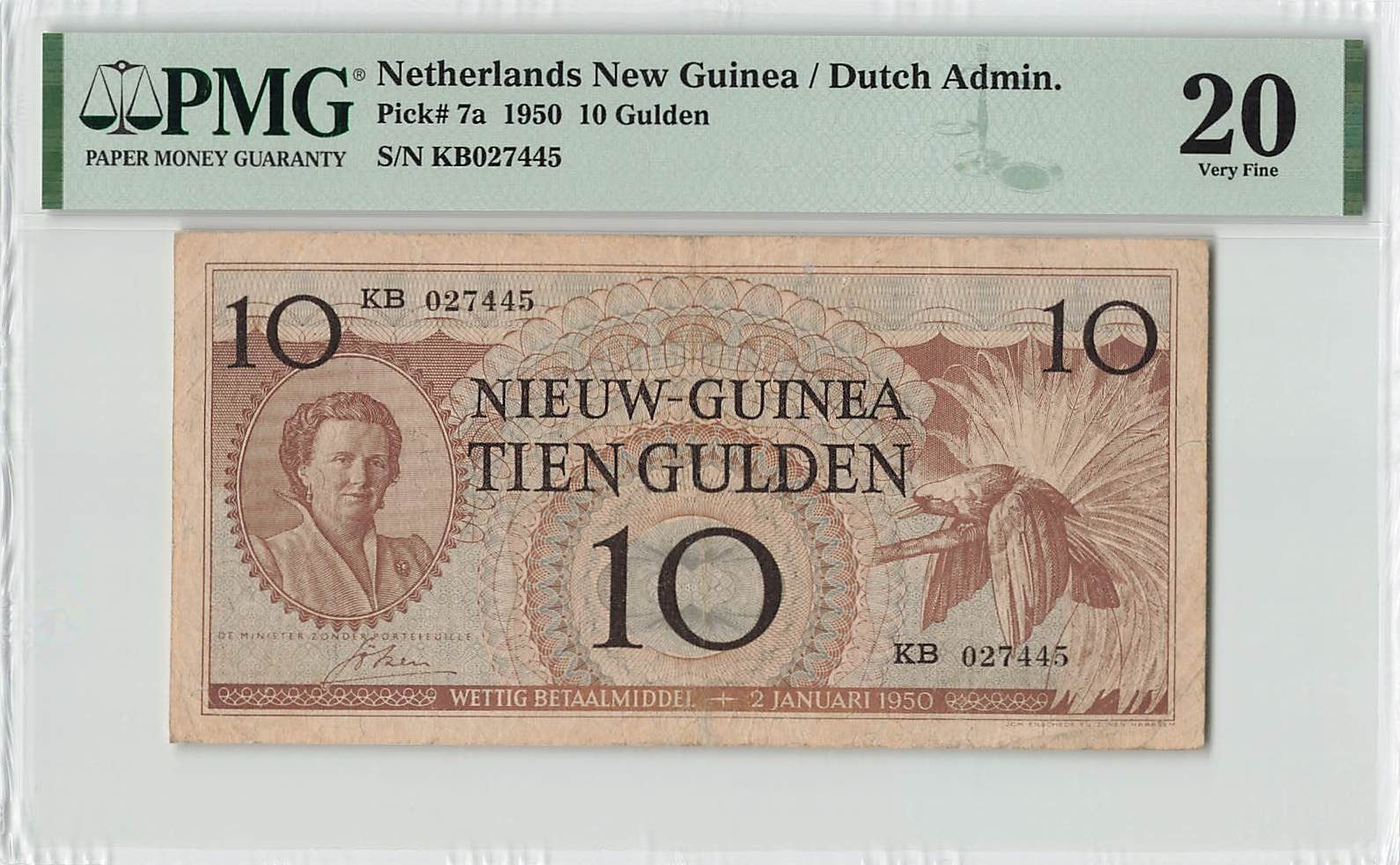 Netherlands New Guinea 10 Gulden 1950 Pick 7a PMG Very Fine 20