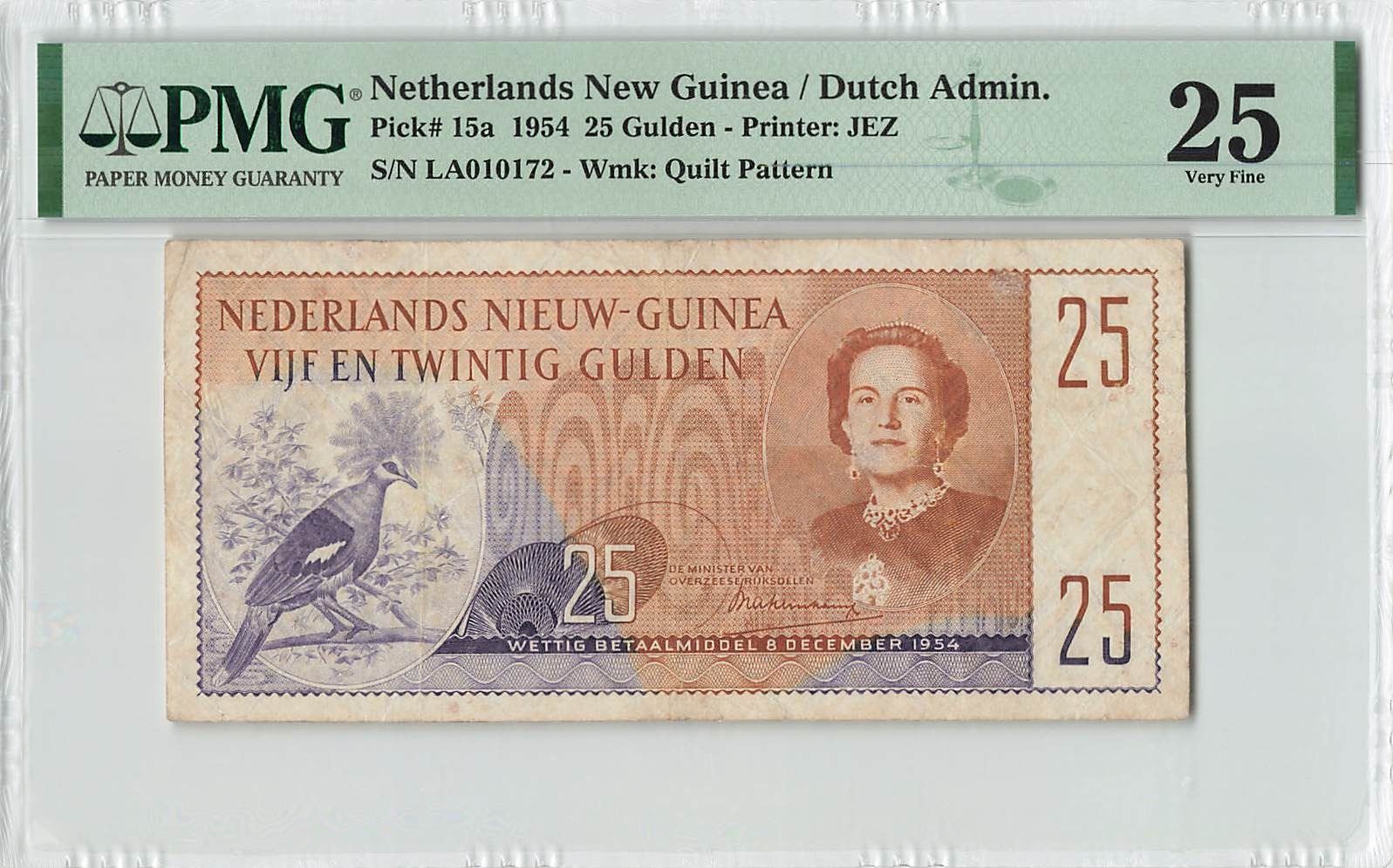 Netherlands New Guinea 25 Gulden 1954 Pick 15a PMG Very Fine 25