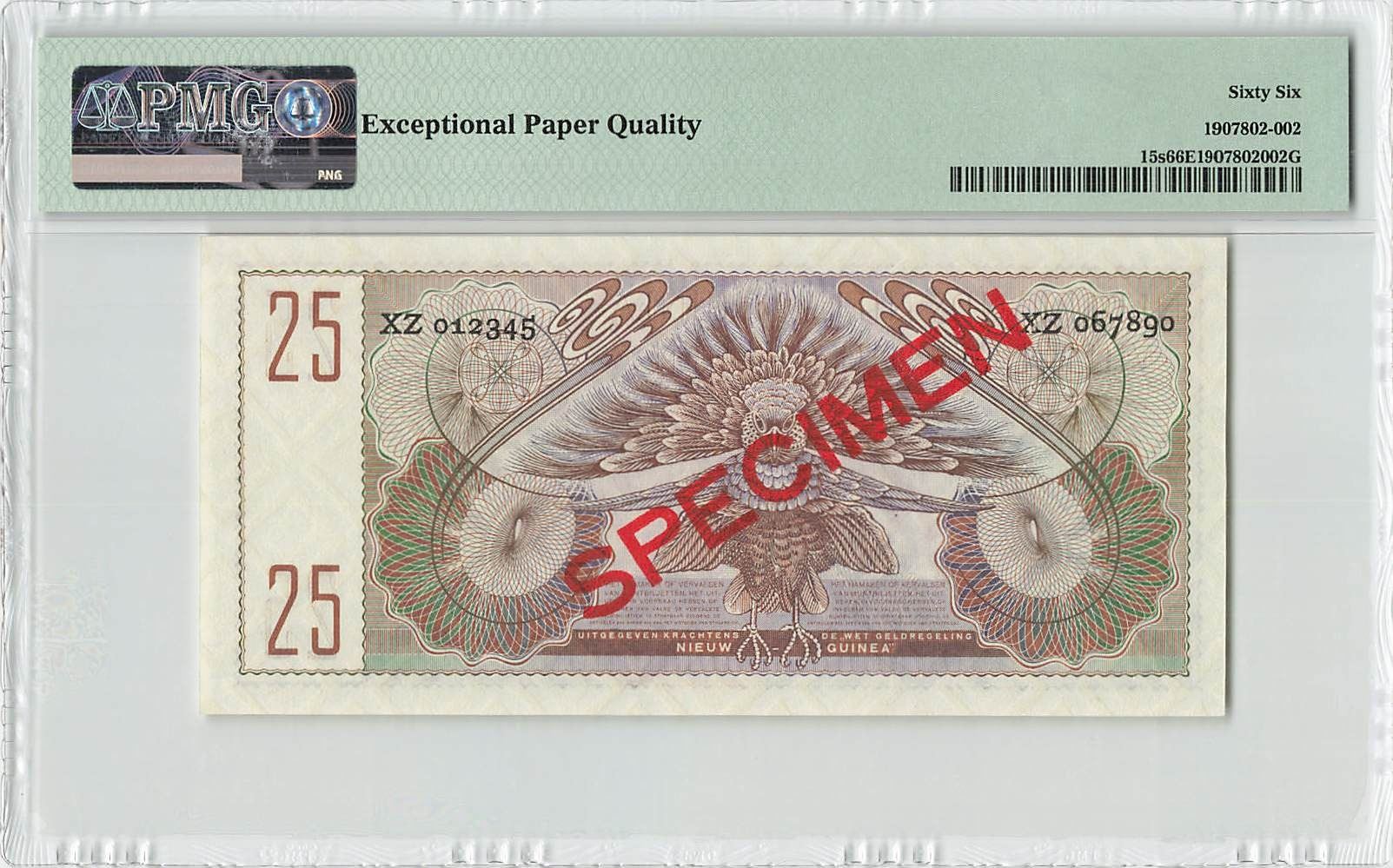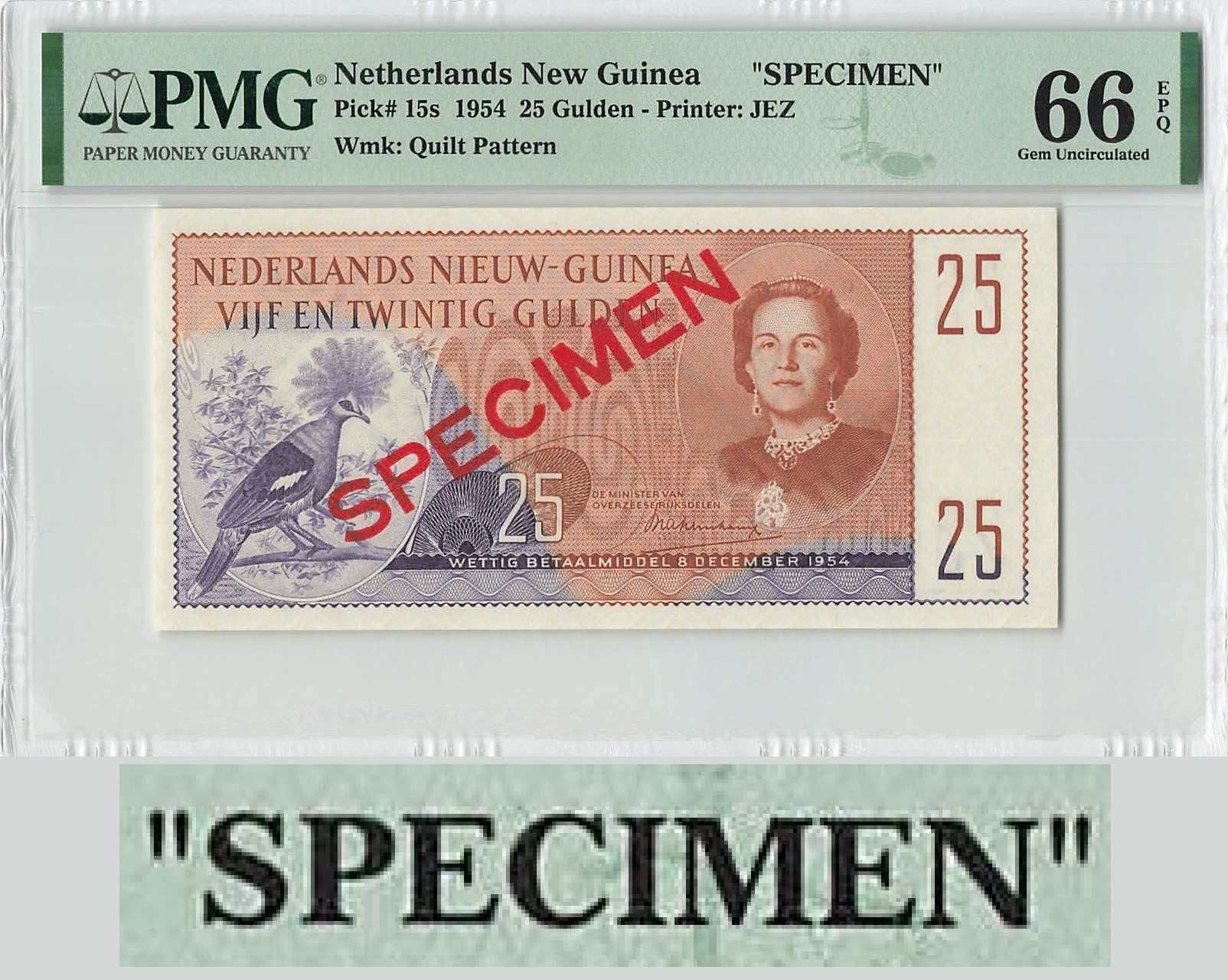 Netherlands New Guinea 25 Gulden 1954 Specimen Pick 15s PMG Gem UNC 66 EPQ