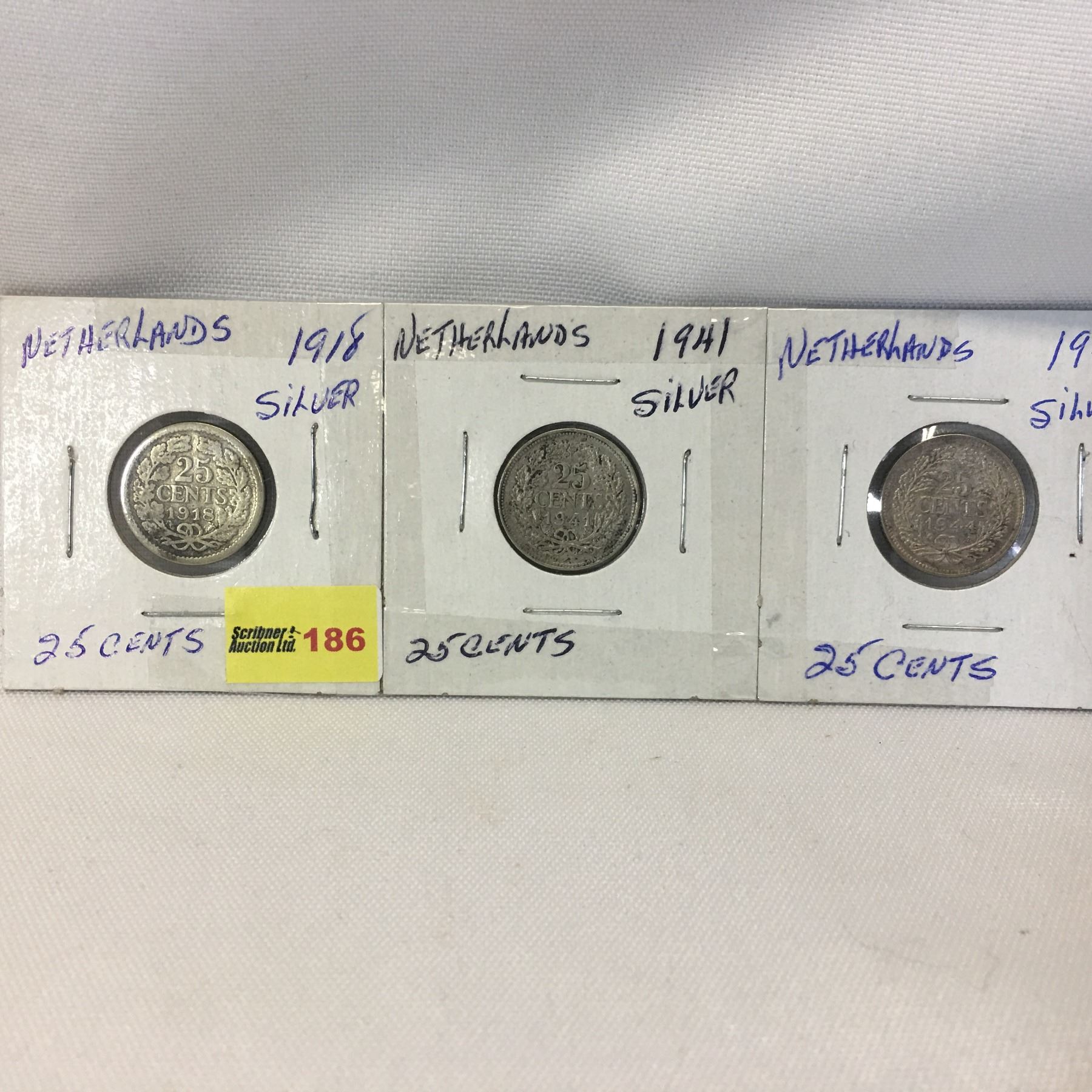 Netherlands Twenty Five Cent - Set of 3: 1918; 1941; 1944