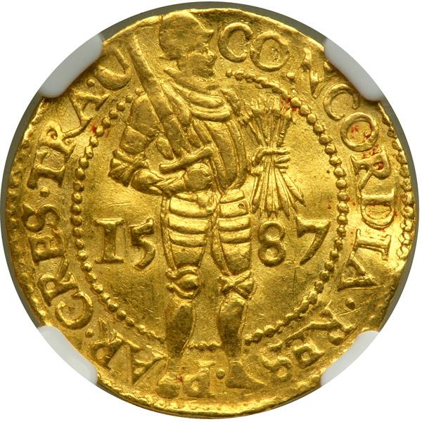 Netherlands - Utrecht. Ducat, 1587. Fr-284. Standing knight. Reverse: Legend within tablet. First year of the type struck at Utrecht. NGC graded EF-45.