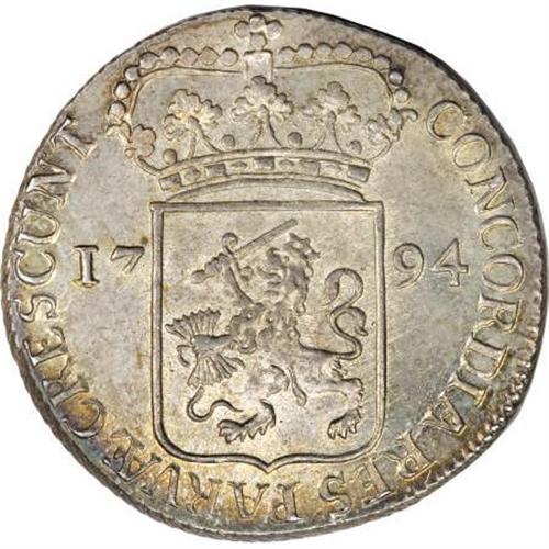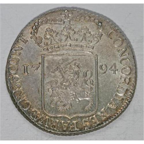 <B>West Friesland. Silver Ducat - Rijksdaalder 1794,</B></I> KM128, choice fully lustrous UNC, lightly toned and very attractive.<BR><BR><b>Shipping:</b> Coins & Currency (<a target="_blank" href="http://www.heritageauctions.com/common/shipping.php">view shipping information</a>)