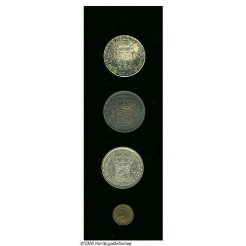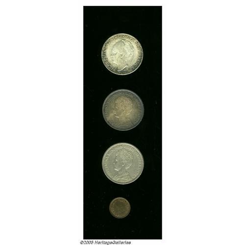 <B>Wilhelmina I Selection of Minors, </B></I>KM109 1/2 Cent 1898, choice lustrous UNC, very scarce, KM148 Gulden 1911, VF, harshly cleaned and 1916, deeply toned AU, and KM161.2 Gulden 1944-D Acorn, choice toned UNC with full underlying luster. <B>Sold as is, no return lot.</B></I>