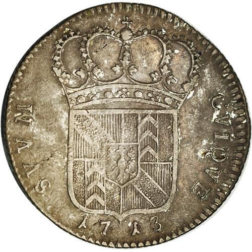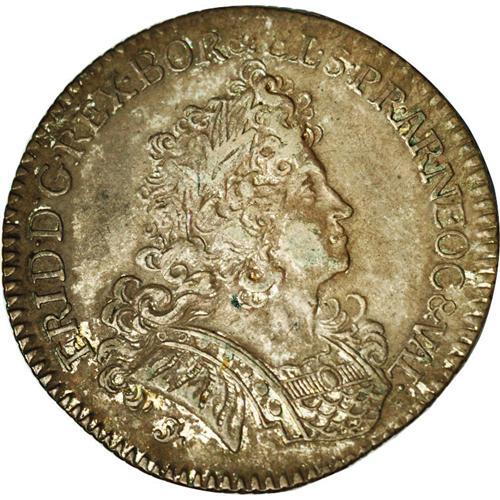 <B>Neuchatel. 1/4 Taler 1713, </B></I>KM38, toned VF with some tiny flecks of old lacquer here and there. Friedrich I of Brandenburg bust right/crowned arms. Scarce.