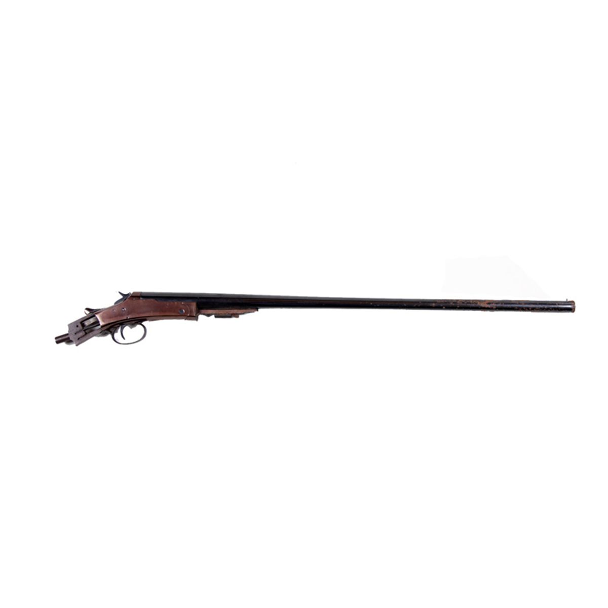 Neumann Bros. SXS Shotgun 12 ga SN:9147 Double barrel shotgun made in Belgium missing the stock, hammers and trigger guard. Blued finish, checkered forend with no stock, 29 1/2" barrels. Good bores, but action is unknown.