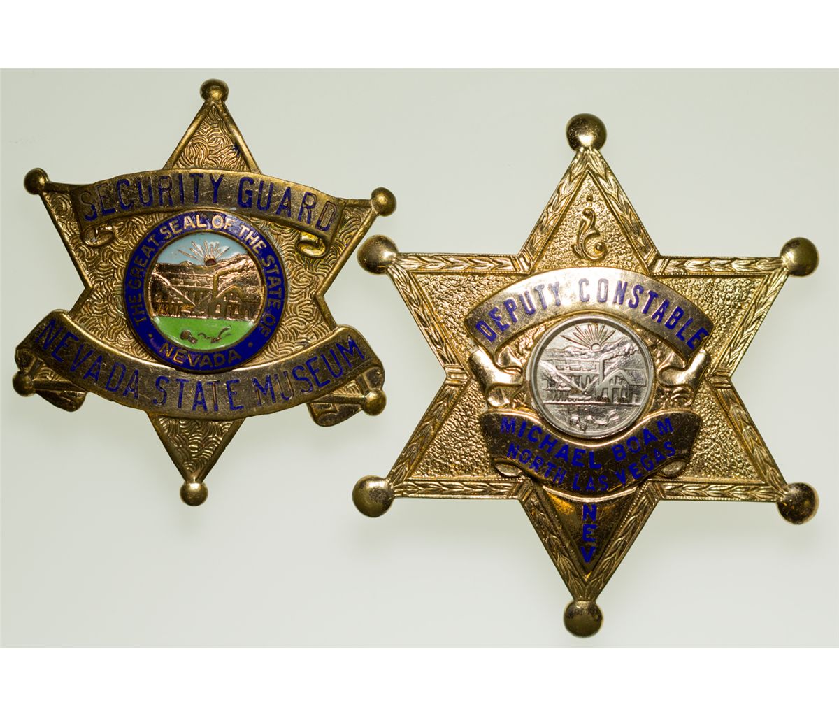 Lot of 2. 1) Six pointed "Deputy Constable Michael Boam North Las Vegas Nev." 2) Security Guard Nevada State Museum. - Jacobitz Collection -59796