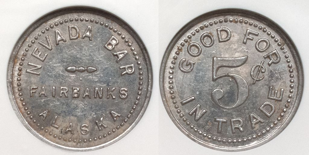 Nevada Bar / Fairbanks / Alaska // GF 5c IT. Certified NGC MS 60!City: FairbanksCounty: North StarState: AKDate: