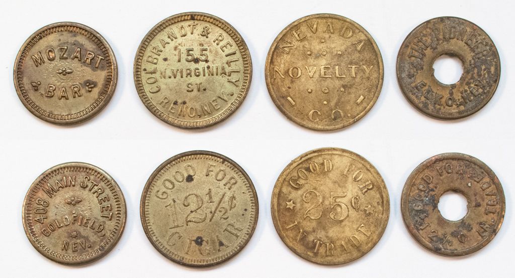 Lot of 4: Nevada Novelty Co., Reno; The Pioneer, Elko; Mozart Bar, Goldfield; Colbrandt & Reilly, Reno