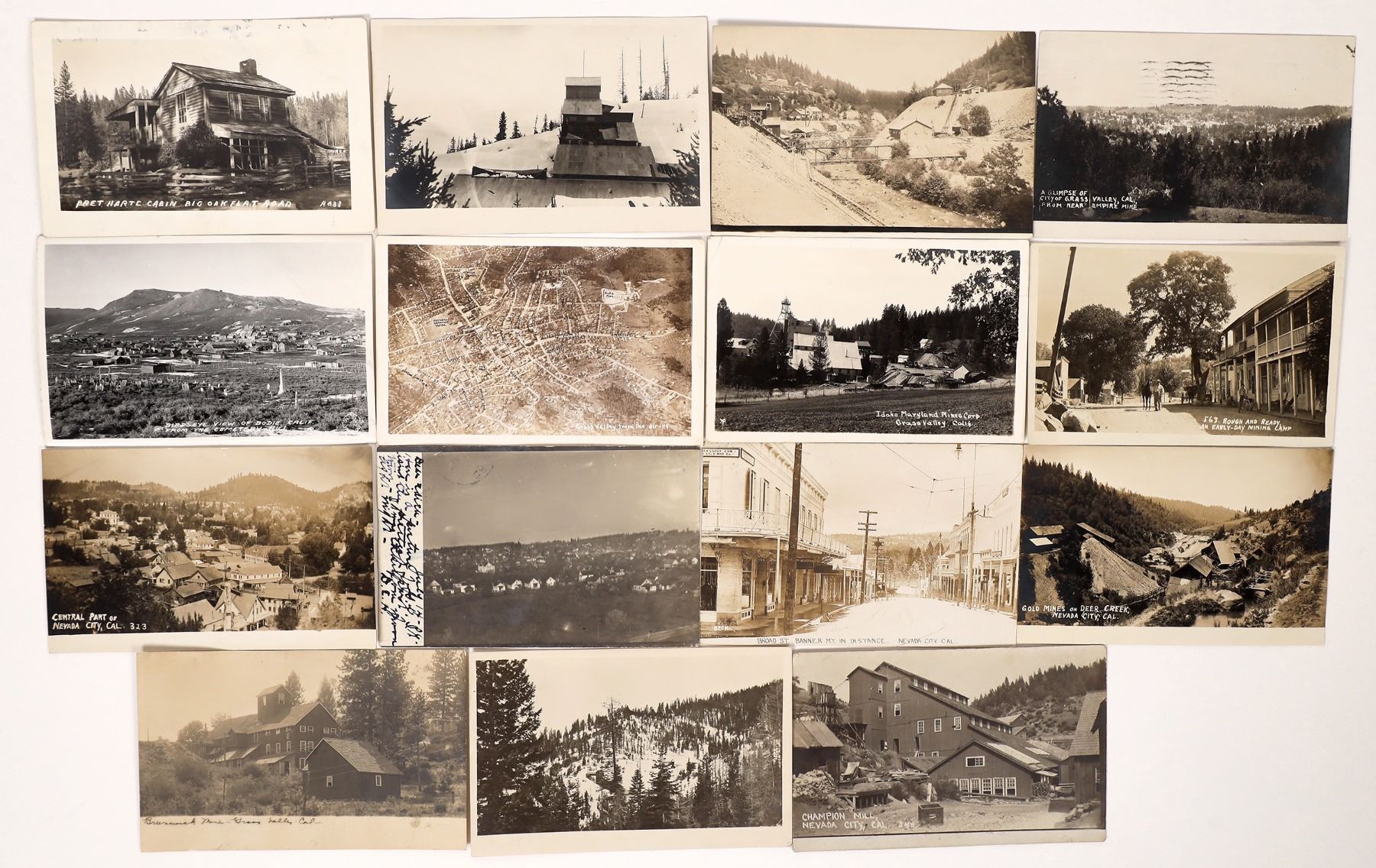 15 Nevada County RPC's-Grass Valley, Deer Creek Gold mines, Champion Mill, Nevada City, Rough and Ready, Bodie Birdseye etc. California Nevada County