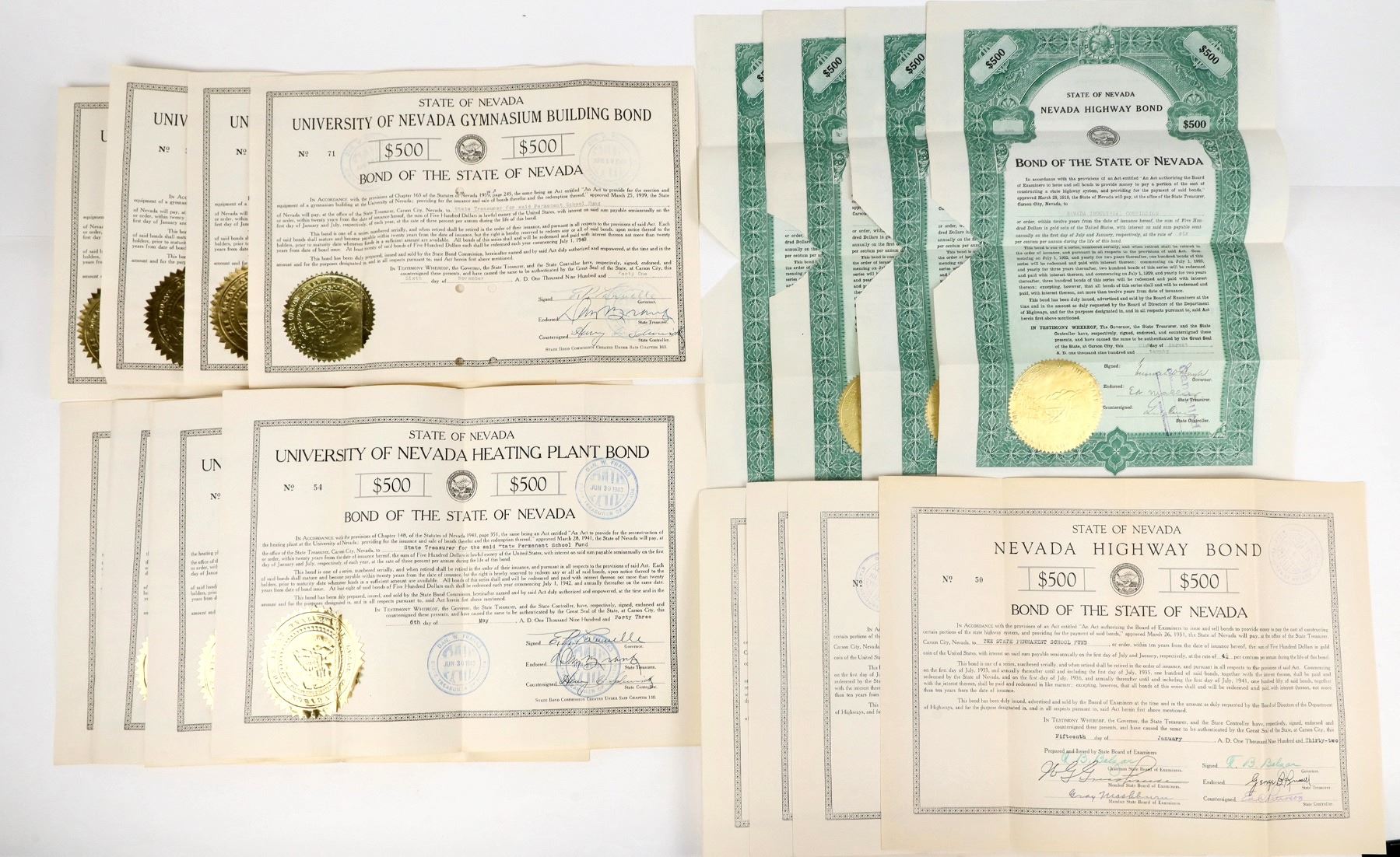 Nevada Governor Signed Bond Group, 4 different, 4 ea., 16 pieces total.