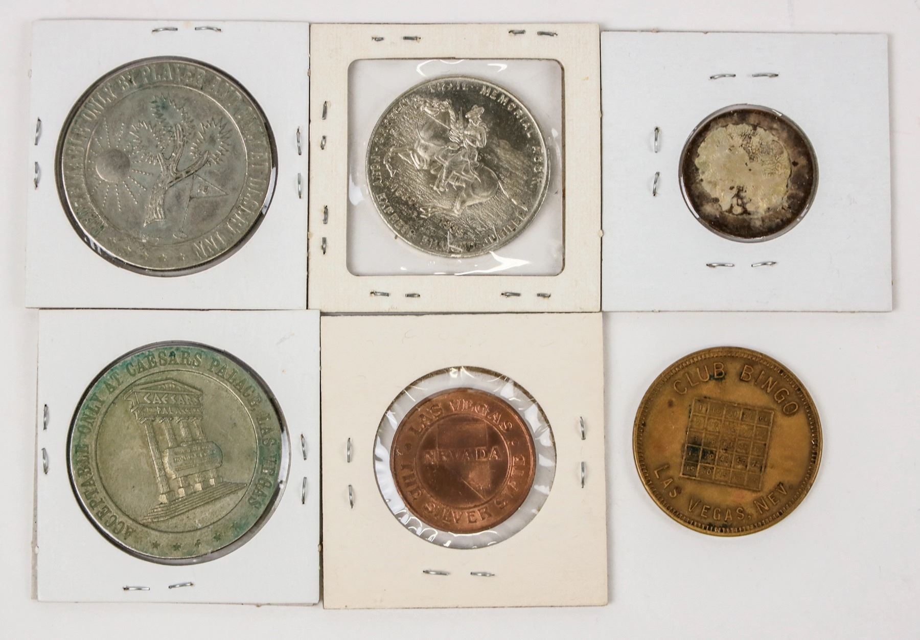 Lot of six: Las Vegas Nevada The Silver State; Pony Express Diamond Jubilee; Desert Inn gaming token; Caesar's Palace gaming token; Club Bingo Las Vegas; Las Vegas Golden Strip.