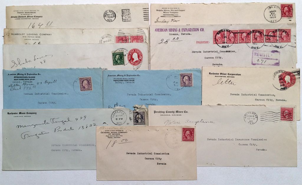 Cancels include Rochester (1913-1926), Lower Rochester (1915-1943),Humboldt (1912-1919), Imlay, Winnemucca, Oreana, Hudson (weak), Lovelocks.